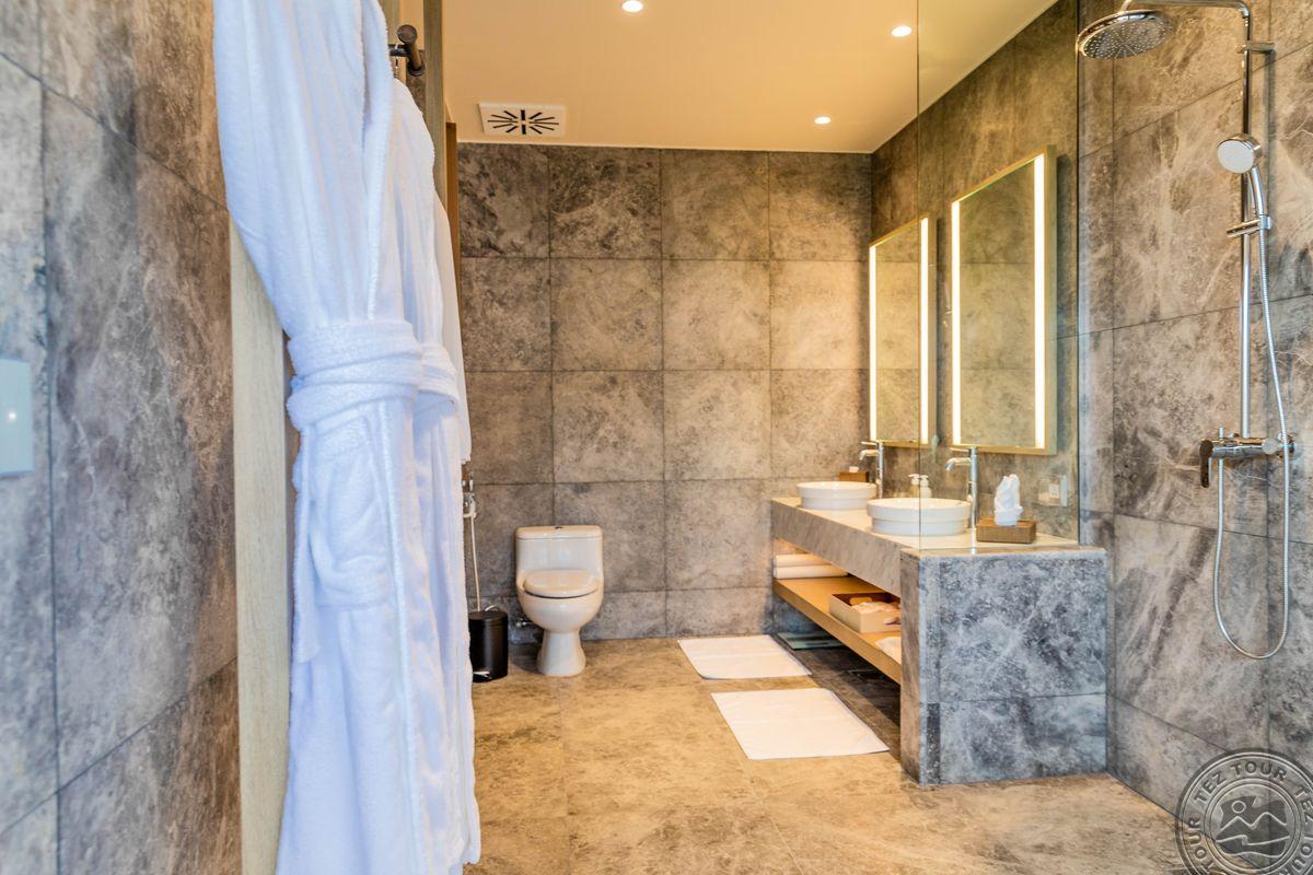 10 Beach Pool Villa (105 м², макс. 3 или 2+1 чел.). Береговые виллы. Спальня с кроватью king-size, ванная комната с душем, ванна и душ на открытом воздухе, терраса с частным бассейном.