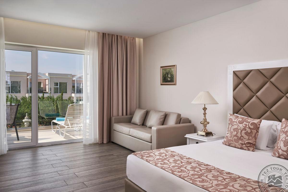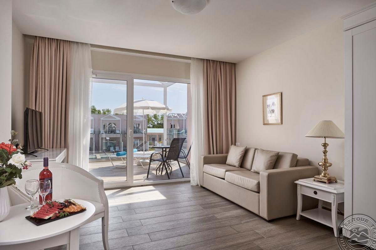 Junior Suite Sharing Pool (выход к бассейну, спальня и гостиная, осн. кровать - двуспальная, доп. - диван - кровать, выход к общему бассейну, макс. 4 чел. + инф., 55 м2)