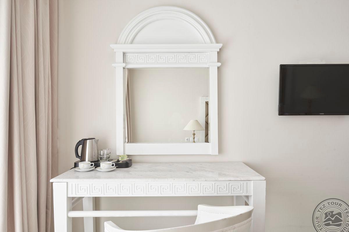 Номер:> сейф: в номере, бесплатно уборка номера: ежедневно кофемашина (по запросу, платно) смена белья: 3 раза в неделю банные принадлежности электрический чайник (бесплатно) телевизор: есть пляжные полотенца (в специально выделенном киоске) душ фен: есть кондиционер: бесплатно смена полотенец: 3 раза в неделю балкон или терраса набор для приготовления чая/кофе (пополняется ежедневно) Интернет: Wi-Fi, бесплатно
