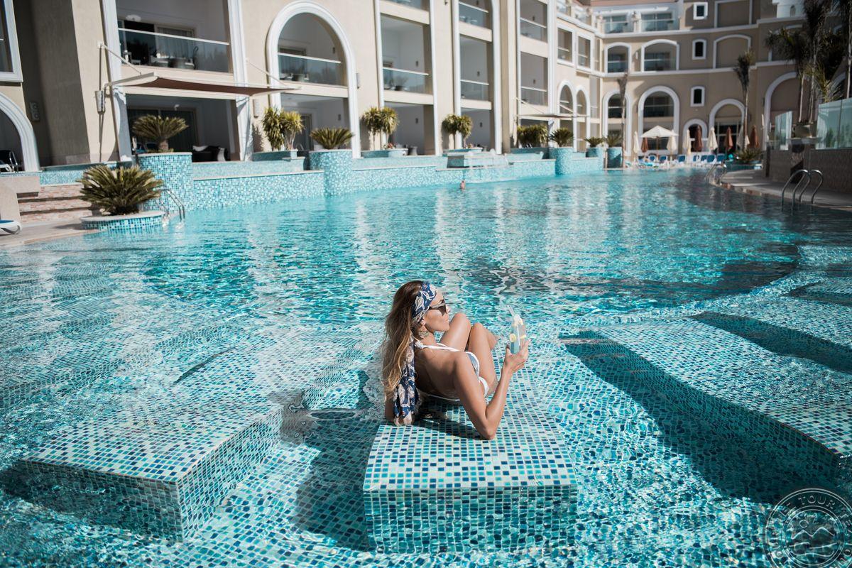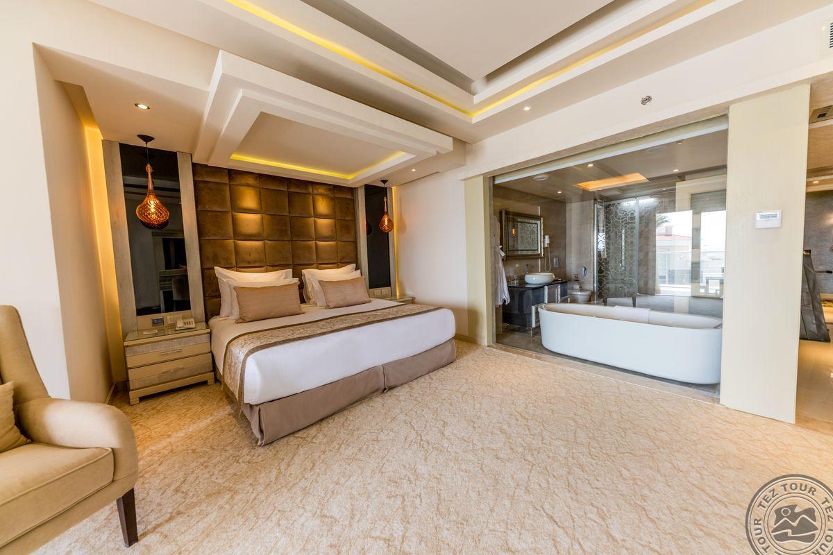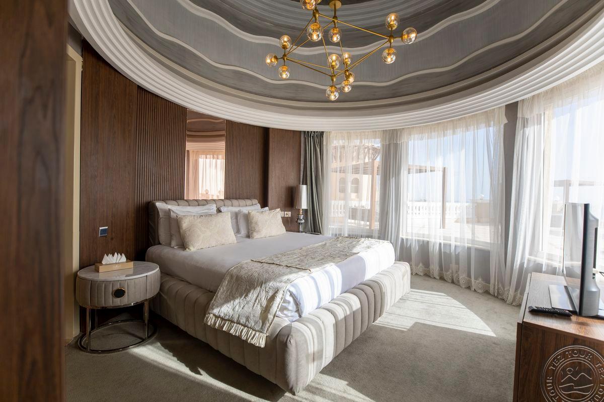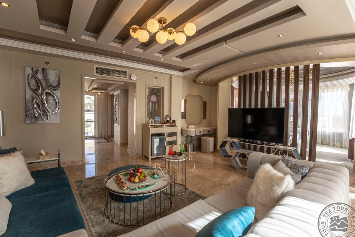 Jacuzzi Suite PV (Pool view, 90 м2, спальня с Super King size bed и гостинной зоной, включая ванную, джакузи и балкон),