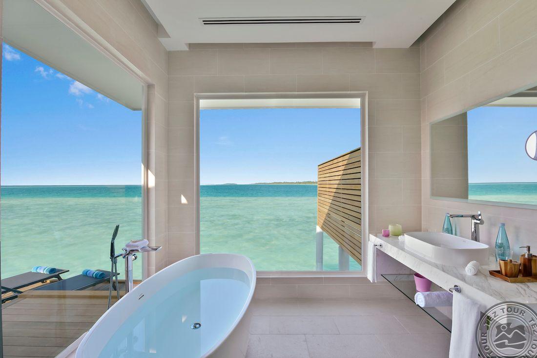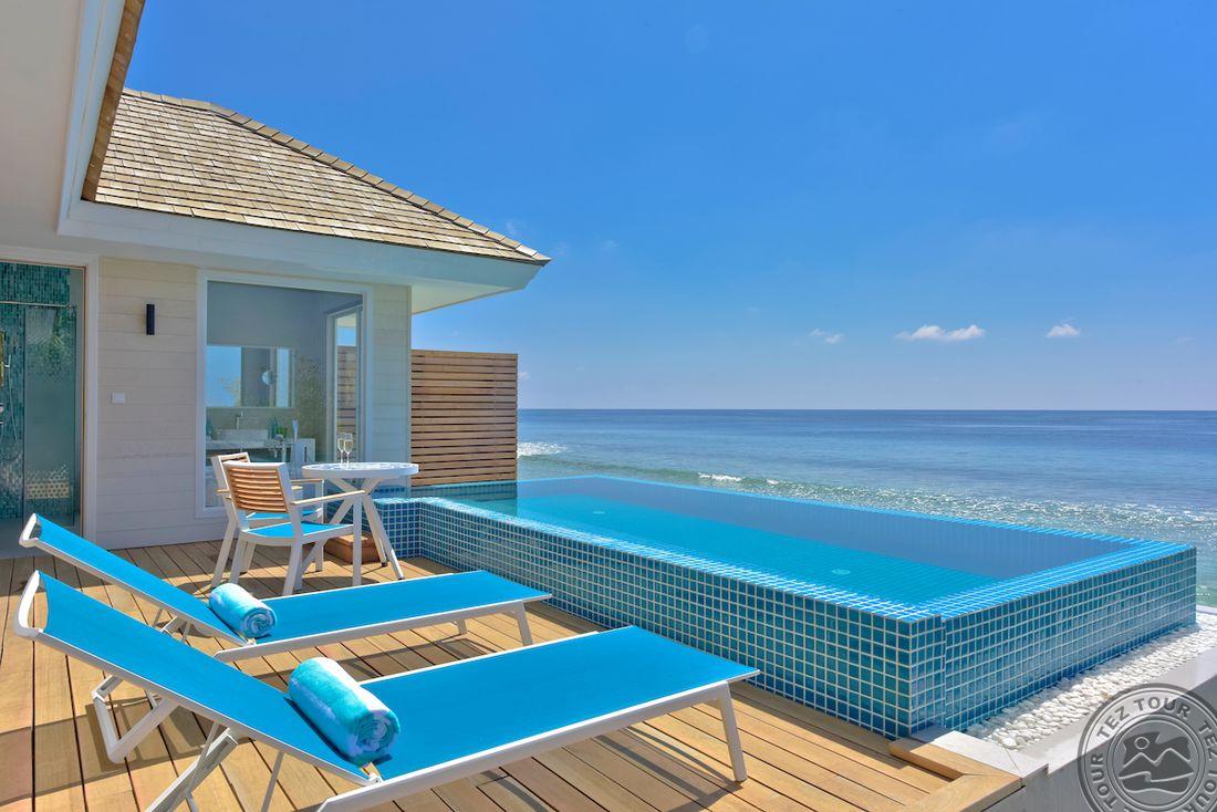 18 Ocean Pool Villa (60 м2 – внутренние помещения/ 35 м2 – внешние, макс. 4 или 2+2 чел.). Просторные виллы, расположенные частично на суше, частично в океане. Не имеют выхода в воду. По наполнению идентичны номерам Aqua Villa, но дополнительно имеют частный бассейн на террасе с видом на океан.