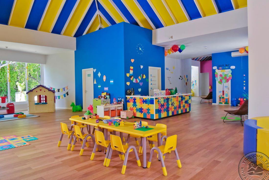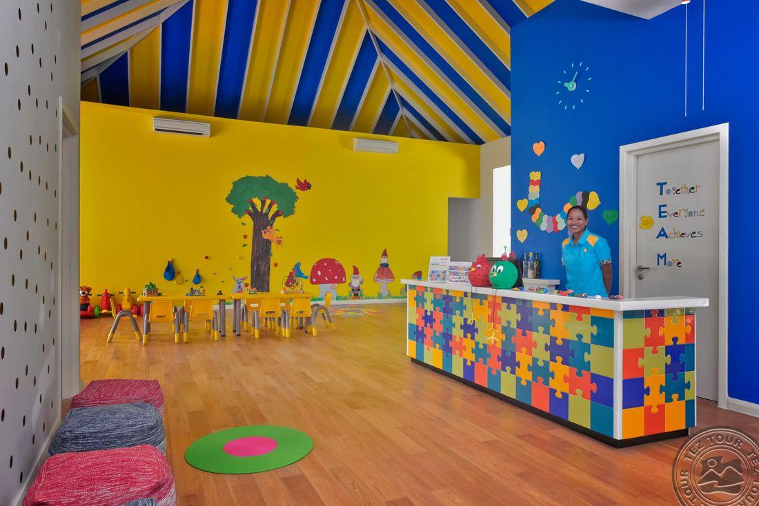 Детям:> детский клуб («Kandiland»»: крытая зона, площадка под открытым небом с водной игровой зоной, кулинарной студией) услуги няни: по запросу детское меню в ресторане