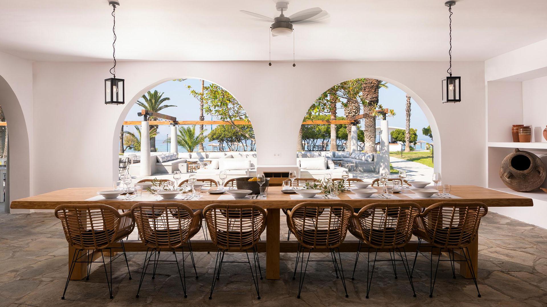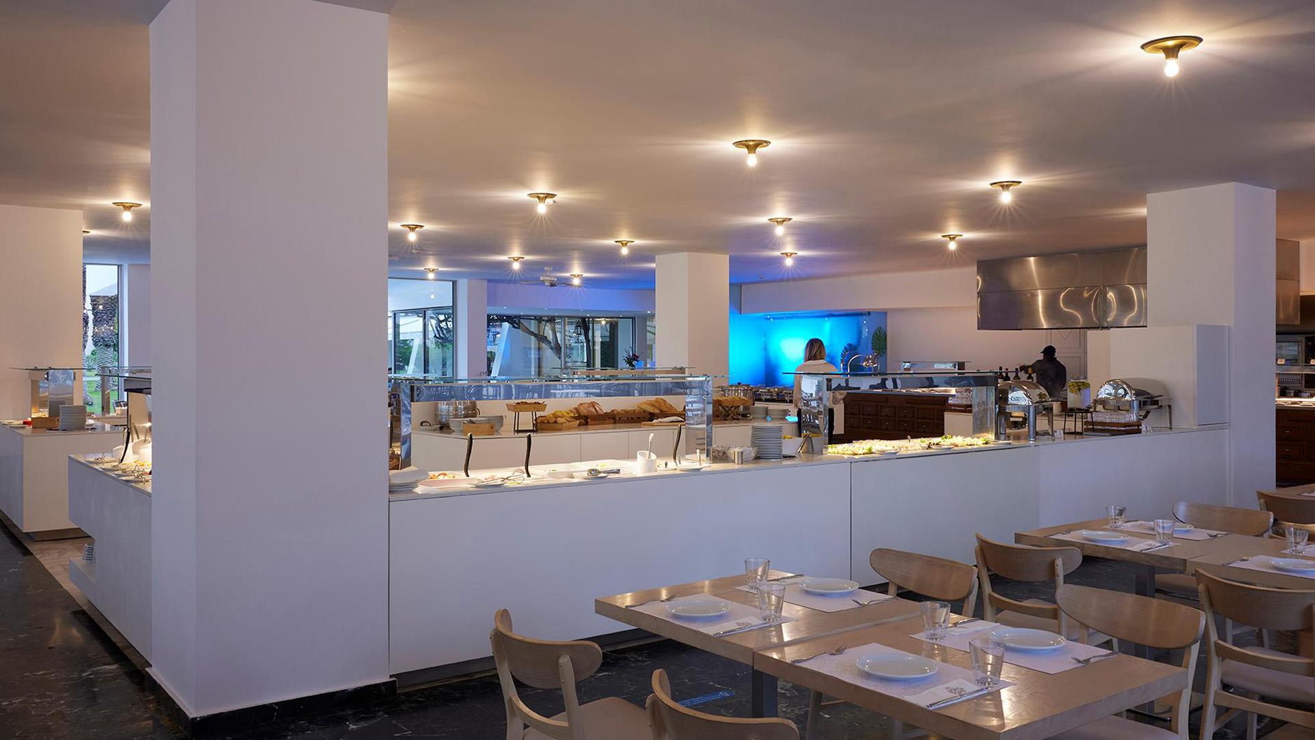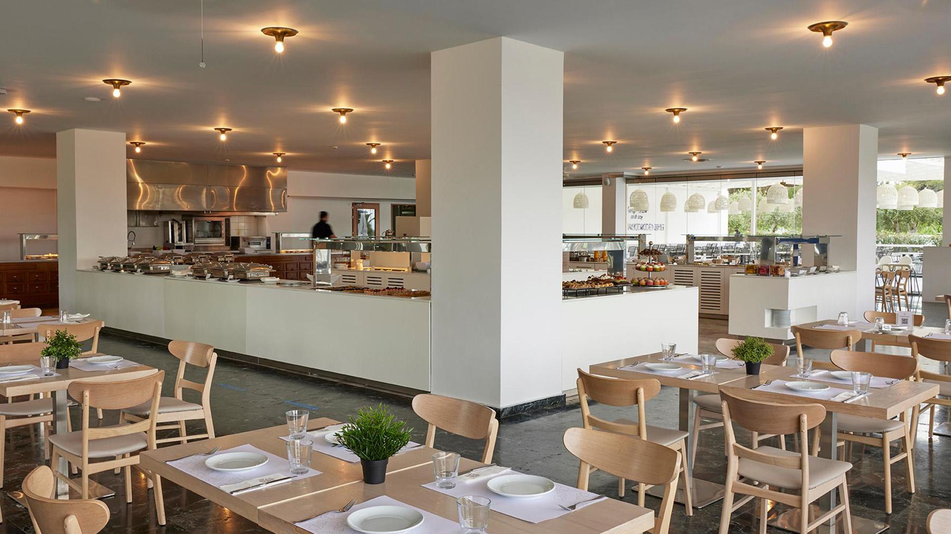 - Основной Ресторан: находится в главном корпусе; система «шведский стол», ранний завтрак по запросу, 30-11.11, 19.00-21.30, греческая и международная кухни