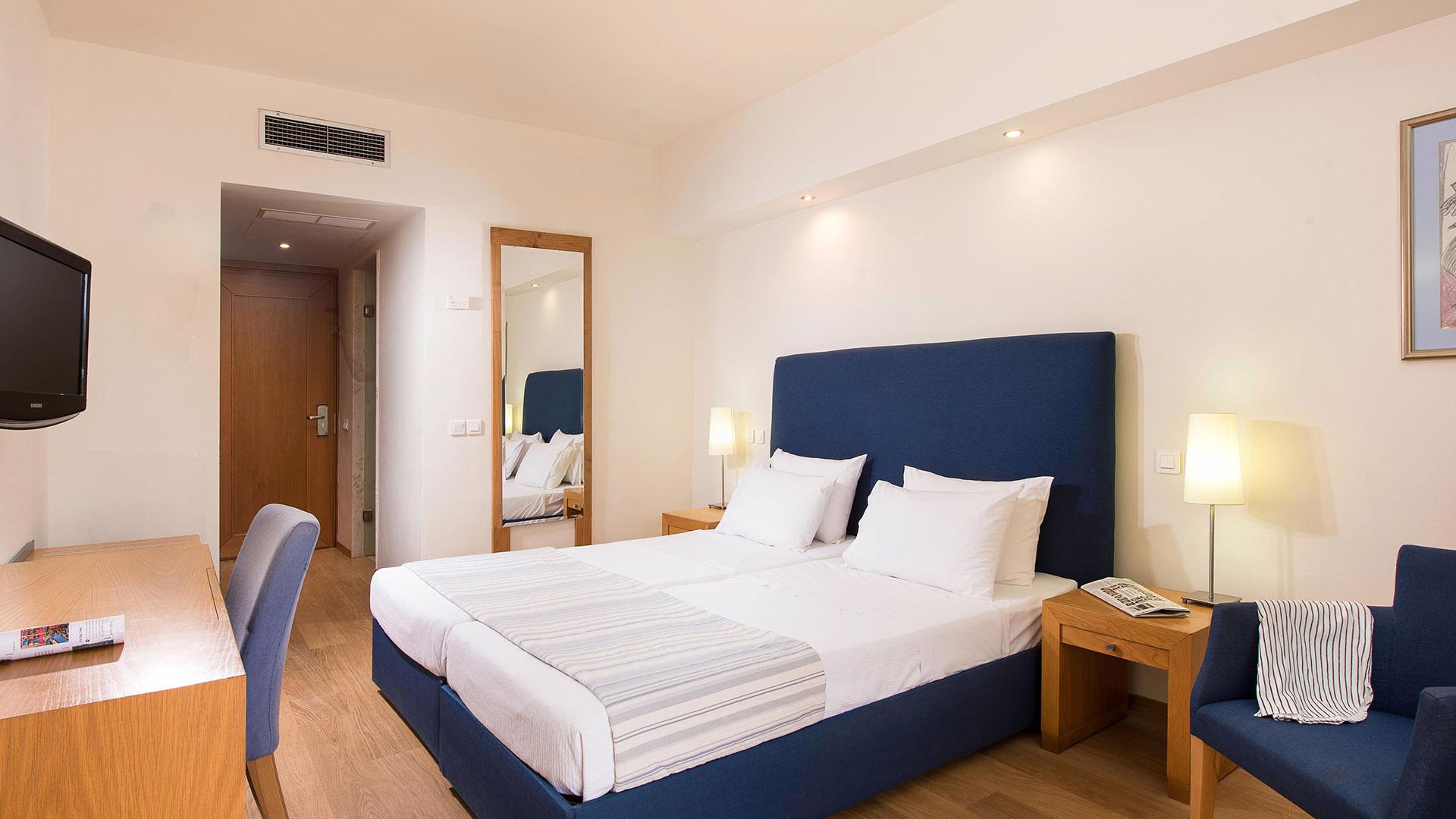 - STANDARD ROOM INLAND VIEW – 24 кв.м (макс. 2): главный корпус; номер с двуспальной либо 2 односпальными кроватями, ванная комната с ванной, оборудованный балкон с видом на окрестности