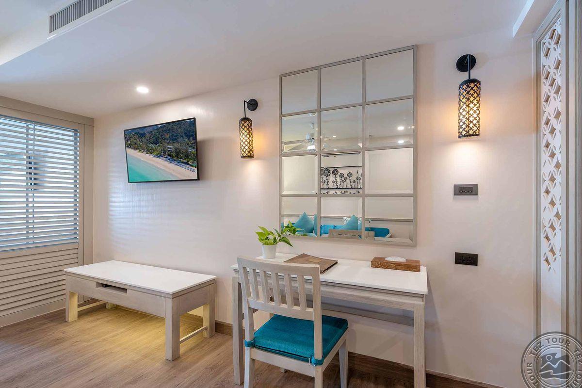 Номер:> сейф: в номере, бесплатно уборка номера: ежедневно халат потолочный вентилятор (кроме De-Luxe, Grand Deluxe) телевизор: есть тапочки холодильник фен: есть кондиционер: индивидуальный room service: круглосуточно, платно балкон или терраса телефон ванна и душ (в De-Luxe, Pool Access Room только душ) набор для приготовления чая/кофе Интернет: Wi-Fi, бесплатно
