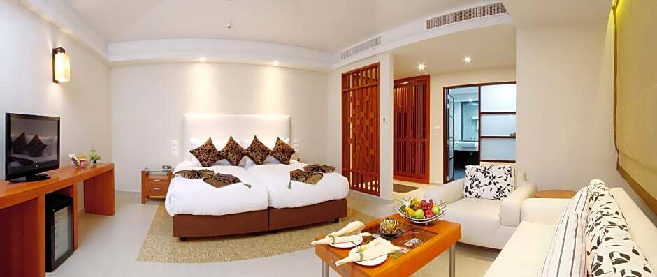 В отеле:Отель KC Resort and Over Water Villas предлагает гостям бесплатный трансфер на пляж. Для желающих отдыхать в отеле, есть все условия для отличного отдыха. В отеле есть прекрасный бассейн с морской водой и территория отдыха с шезлонгами для загорающих.; Для любителей спорта в отеле проводятся занятия аква-аэробикой и йогой. Также вы можете посетить полностью оборудованный фитнес-зал. На всей территории отеля предоставляется бесплатный Wi-Fi.; Отель порадует гурманов средиземноморской и азиатской кухней в собственном ресторане The View. Продегустировать вина и коктейли, а также покурить кальян вы можете винном лаундже отеля. Бар Panorama на крыше отеля приглашает отведать вкусные закуски и напитки.