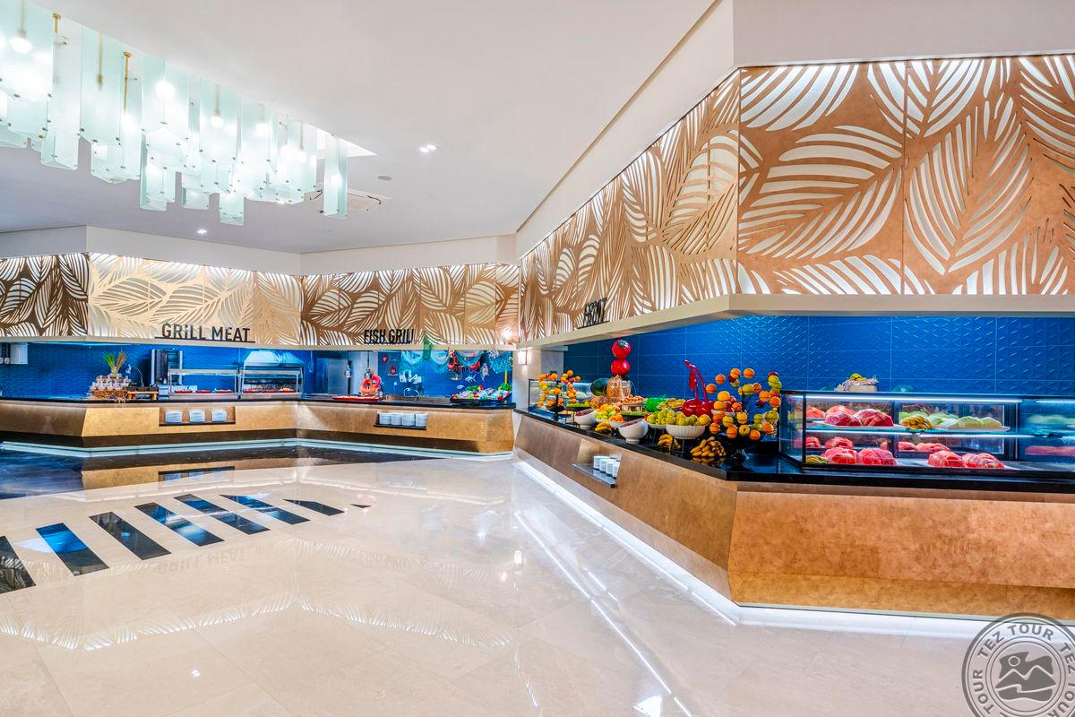 Территория:> рестораны: 1 (основной) бары: 6 крытые бассейны: 1 (с подогревом в зависимости от погодных условий) джакузи: 1 бассейны: 2 (открытые) спа-центр конференц-залы: 3 у бассейна полотенца: бесплатно у бассейна зонтики, шезлонги: бесплатно рестораны a la carte: 2 кабинет врача (платно) кондитерская глажка одежды платно водные горки: 9 Wi-Fi в общественных местах, бесплатно прачечная платно парикмахерская (платно) магазины