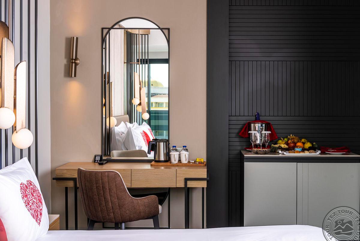 Номер:> сейф: в номере, бесплатно уборка номера: ежедневно халат косметические принадлежности электрический чайник телевизор: есть выбор подушек тапочки балкон душ фен: есть кондиционер: есть мини-бар бесплатно (вода, прохладительные напитки - ежедневно) room service: круглосуточно, платно телефон набор для приготовления чая/кофе Интернет: Wi-Fi, бесплатно