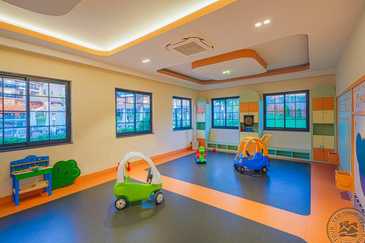 Детям:> детский клуб (4-12 лет) детский бассейн: открытый (для малышей, с подогревом в зависимости от погодных условий) детская площадка детский аквапарк анимационная программа для детей детская дискотека видеоигры детский буфет (в основном ресторане) крытый бассейн (с подогревом в зависимости от погодных условий)