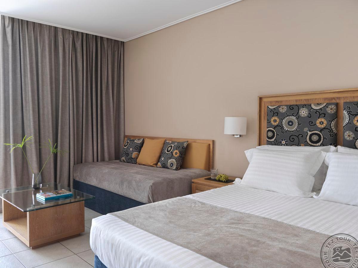 Спорт и развлечения:> бочче бесплатно вечернее шоу бесплатно (несколько раз в неделю) катание на лошадях (в 10 км от отеля) сауна бесплатно парная бесплатно дартс бесплатно пилатес освещение теннисного корта платно уроки кулинарии (греческая кухня) бильярд платно живая музыка бесплатно поле для гольфа (в 13 км от отеля, платно) водные виды спорта платно массаж платно (11 кабинетов для различных видов терапии в SPA-центре) прокат теннисных ракеток и мячей бесплатно джакузи бесплатно тренажерный зал бесплатно уроки тенниса платно волейбол на пляже бесплатно анимация настольный теннис бесплатно прокат велосипедов платно йога электронные игры платно аквааэробика теннисный корт бесплатно (синтетическое покрытие и кварцевый песок)