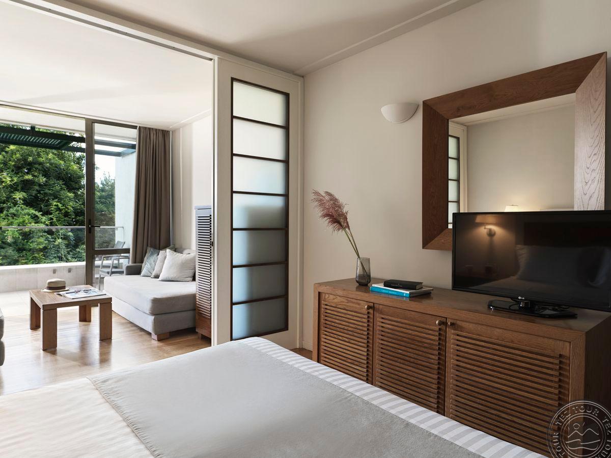Deluxe Suite 1BR Sea View Main Building (вид на море, находится на 4 этаже основного здания, спальня и гостиная с раздвижной дверью, осн. кровать – king size, доп. – софа, макс. 3 чел., 73 м2);