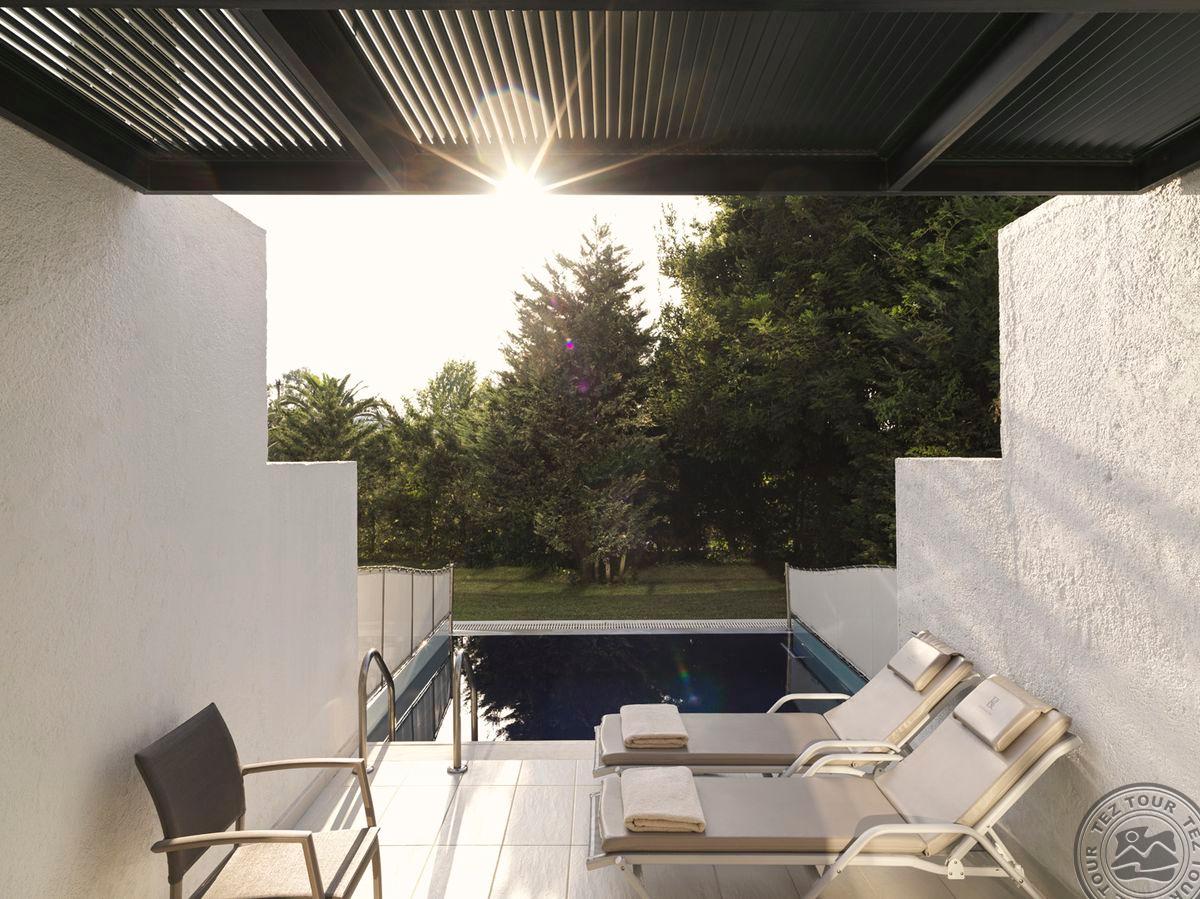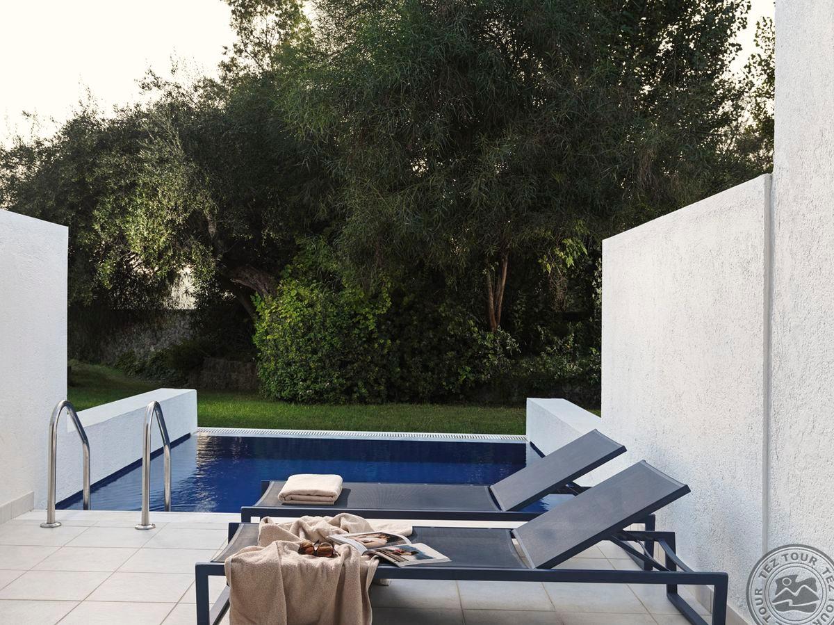 Junior Suite Bungalow Sea Front Private Pool (прямой вид на море, находится в комплексе бунгало, на нижнем этаже, однокомнатный номер, спальня с гостиной зоной, осн. кровать – двуспальная, терраса с индивидуальным бассейном, макс. 3 чел., 36 м2);