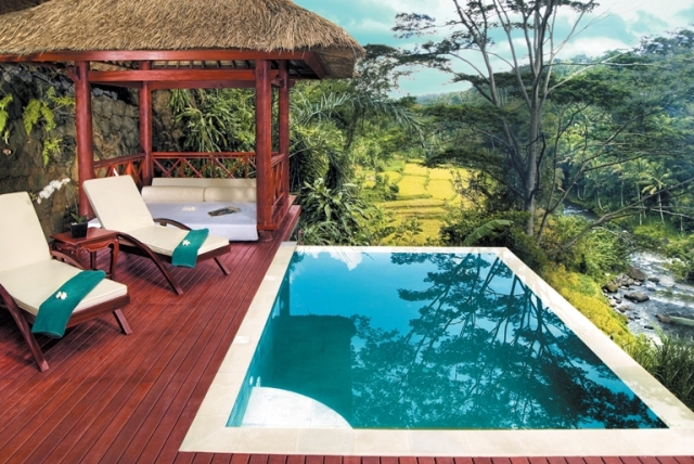85 номеров; открытый бассейн, 2 открытых бассейна для крыла Jungle Retreat, wi-fi на всей территории курорта и в номерах, бутик L`Occitane, магазин, шаттл-сервис до центра Убуда