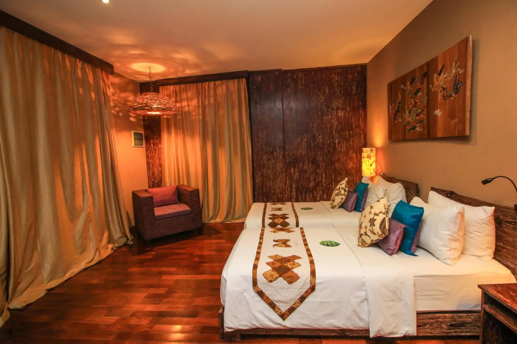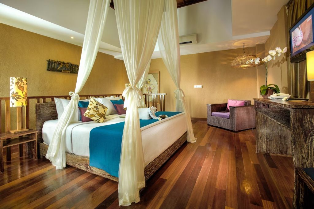 Описание номеров Kupu Kupu Jimbaran 5*:В отеле Kupu Kupu Jimbaran 30 номеров, выходящих на бассейн или сад. В просторных люксах с этническим декором установлены ЖК-телевизоры, DVD-проигрыватели, мини-бары, кондиционеры. Для приготовления напитков имеется кофеварка и чайник.