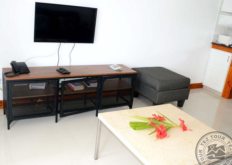 Номер:> сейф: есть уборка номера: 6 раз в неделю телевизор: есть балкон душ (ванна и душ в номерах Apartment Two Bedroom) фен: есть кондиционер: есть смена полотенец: по прибытию телефон оборудованная кухня (плита, рисоварка, тостер, холодильник, морозилка, микроволновая печь, чайник, кухонные принадлежности, посуда) Интернет: Wi-Fi, бесплатно
