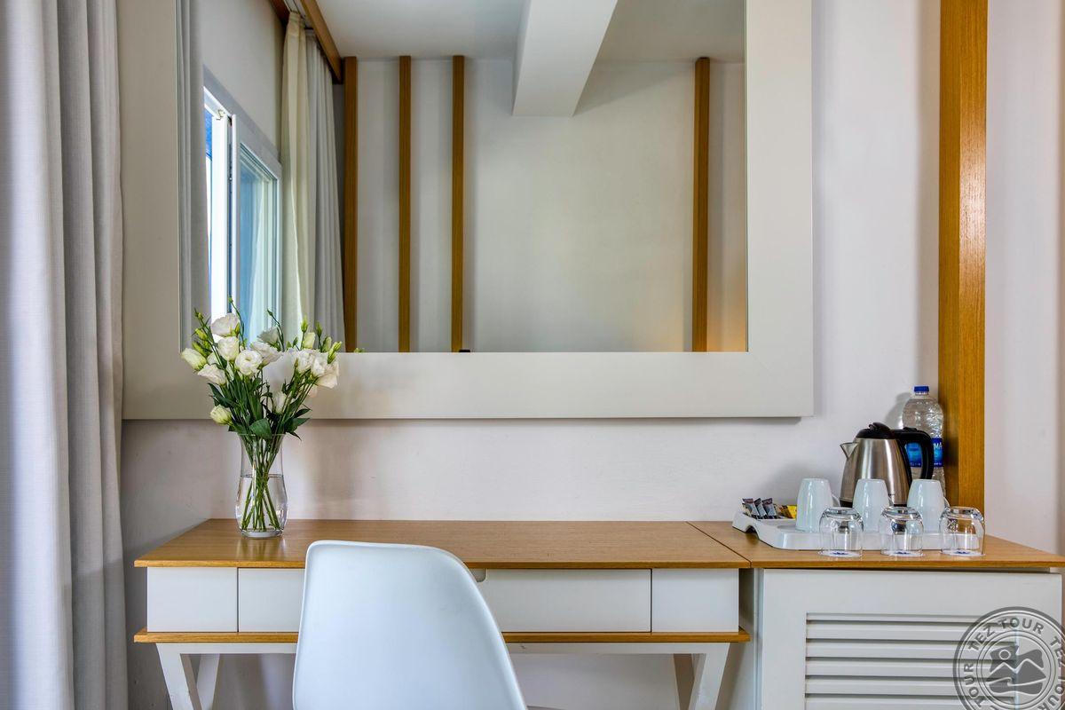Номер:> сейф: в номере, бесплатно уборка номера: ежедневно смена белья: 3 раза в неделю пол: керамическая плитка телевизор: есть душ фен: есть кондиционер: индивидуальный мини-бар бесплатно (при заезде прохладительные напитки, вода – заполнение 1 раз в 2 дня) room service: круглосуточно, платно балкон или терраса (французский балкон) телефон набор для приготовления чая/кофе русских каналов: 1