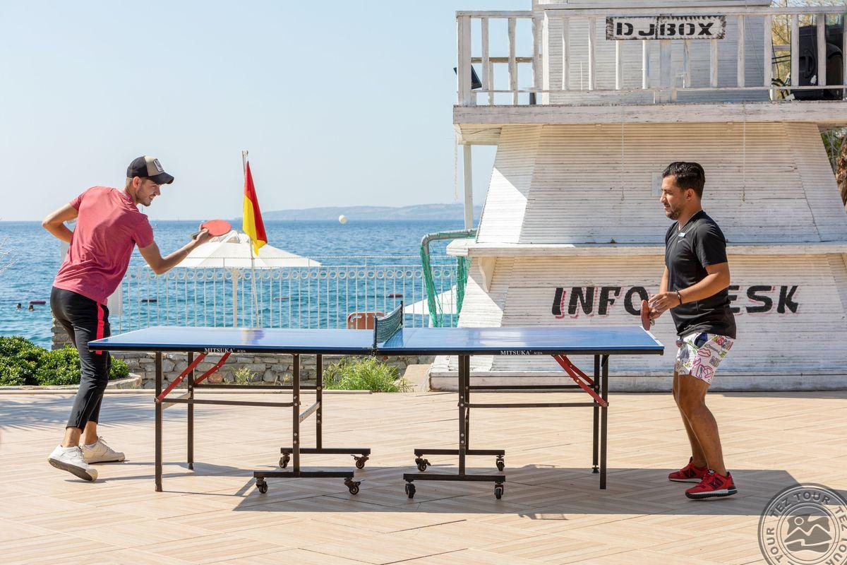 Спорт и развлечения:> бочче бесплатно вечернее шоу бесплатно водное поло бесплатно сауна бесплатно парная бесплатно дартс бесплатно гимнастика бесплатно (утренняя и водная) водные виды спорта платно массаж платно турецкая баня (хаммам) бесплатно аэробика бесплатно (степ) баскетбол бесплатно тренажерный зал бесплатно волейбол на пляже бесплатно анимация бесплатно настольный теннис бесплатно
