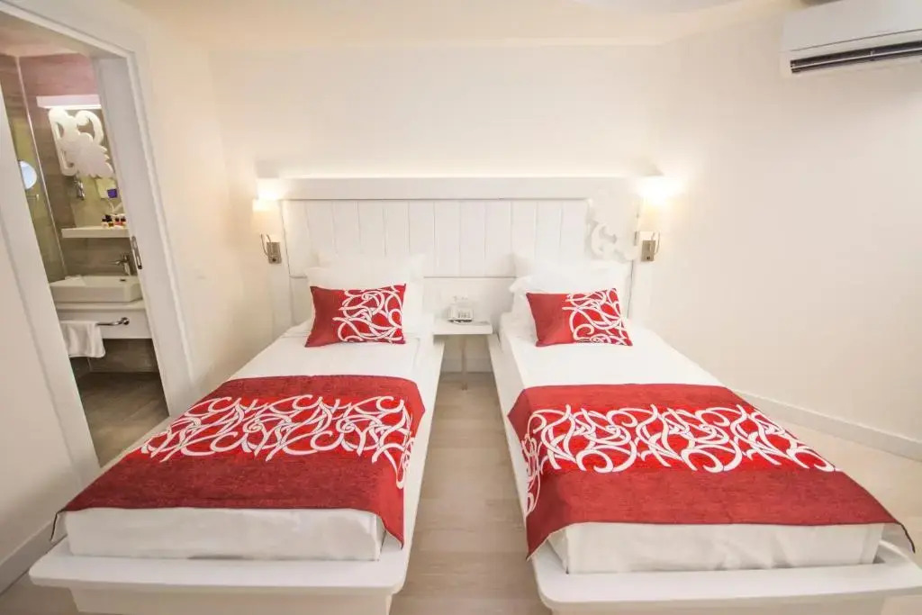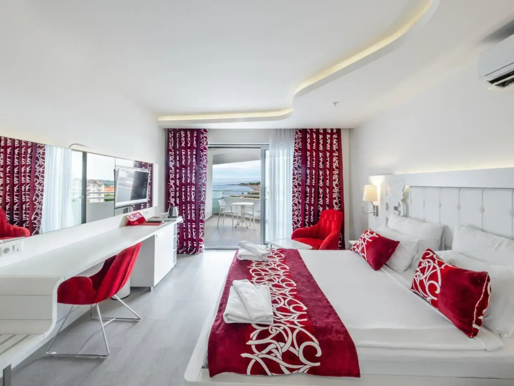 Описание номеров Laguna Beach Alya Resort&spa 5*:В номере гостей ждут душ, телевизор, мини-бар и тапочки. Перечисленные услуги есть не во всех номерах.