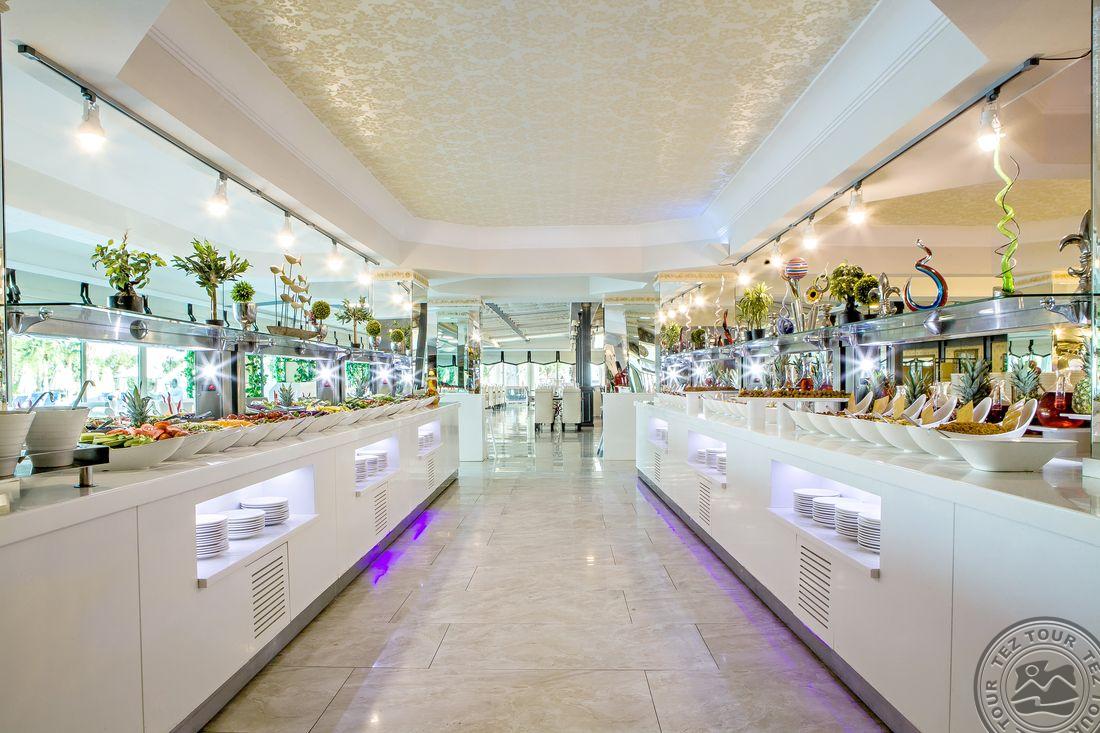 Территория:> рестораны: 1 (основной) бары: 4 крытые бассейны: 1 (платно) бассейны: 4 (открытые, один из них термальный, платно) спа-центр у бассейна полотенца: бесплатно у бассейна зонтики, шезлонги: бесплатно рестораны a la carte: 2 (итальянский, турецкий, османский- по предварительной записи 1 посещение за неделю отдыха –бесплатно, открытие 01.05.2020) кабинет врача водные горки: 8 прачечная Wi-Fi бесплатно (на всей территории отеля) парикмахерская магазины