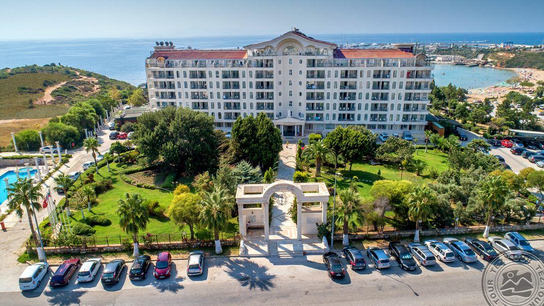 в 84 км от аэропорта Миласа Бодрума, в 142 км от аэропорта г. Измира, в 3 км от центра Дидима, в поселке Айдын, на берегу моря.