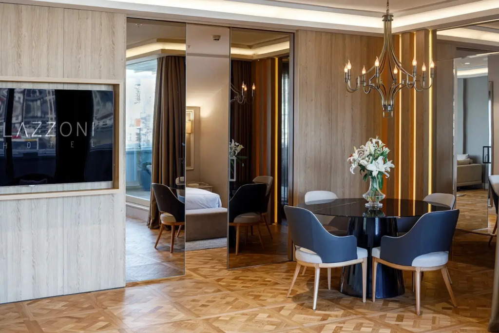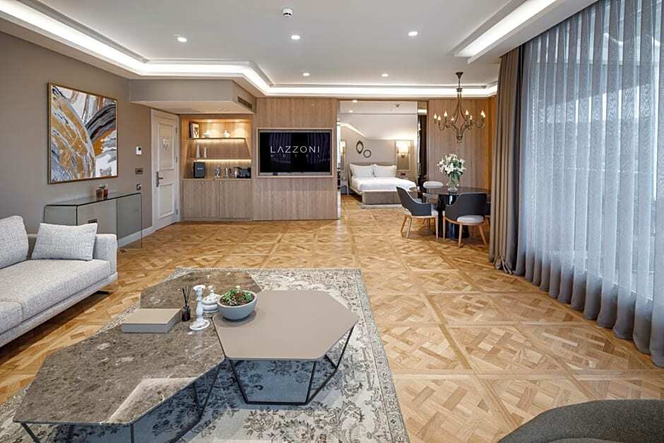 Описание номеров Lazzoni Hotel 5*:Чтобы вы могли отдохнуть после долгого дня, в номере есть телевизор, мини-бар и халат. Перечисленные услуги есть не во всех номерах.