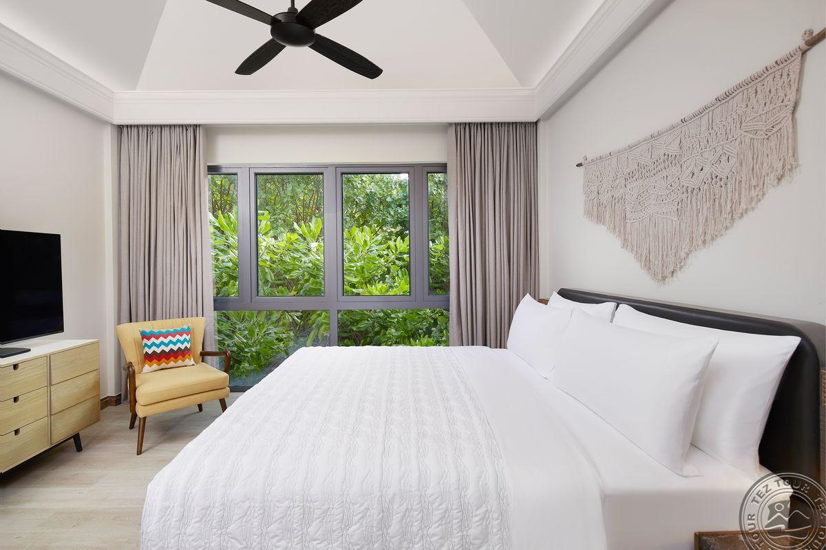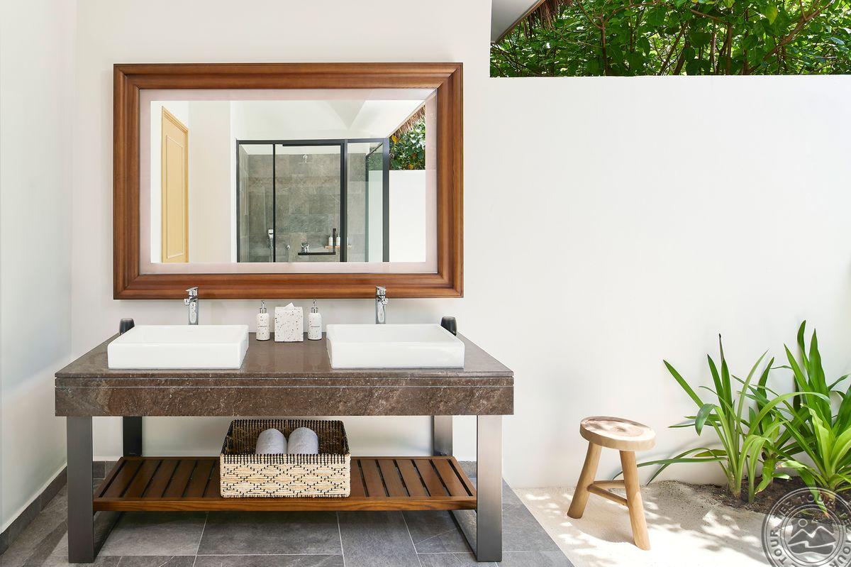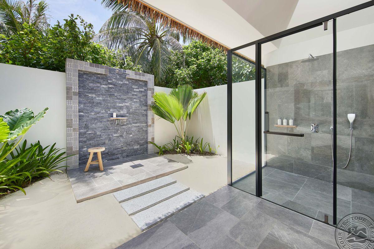25 Beach Villa (82 м2; макс. 2+1 infant). Береговые виллы. Спальня с кроватью king-size, ванная комната с душем, душ на открытом воздухе, терраса;