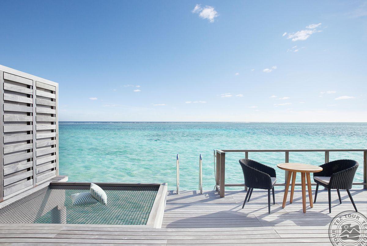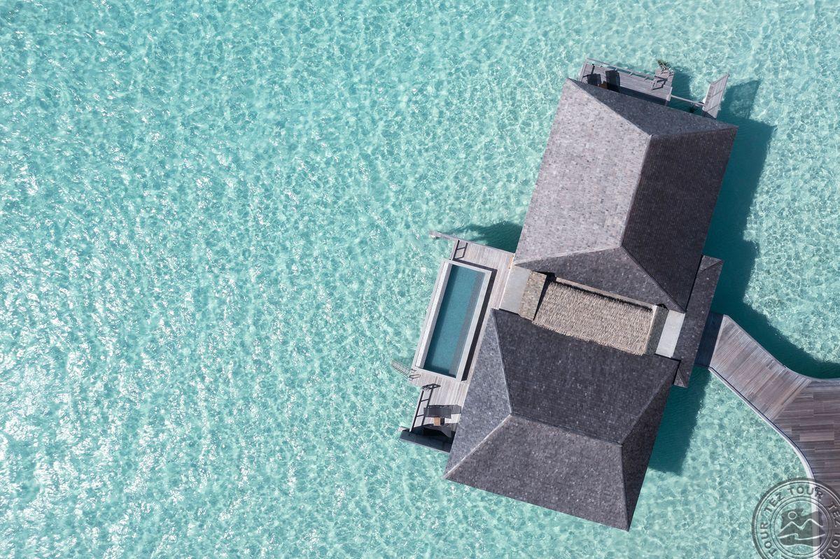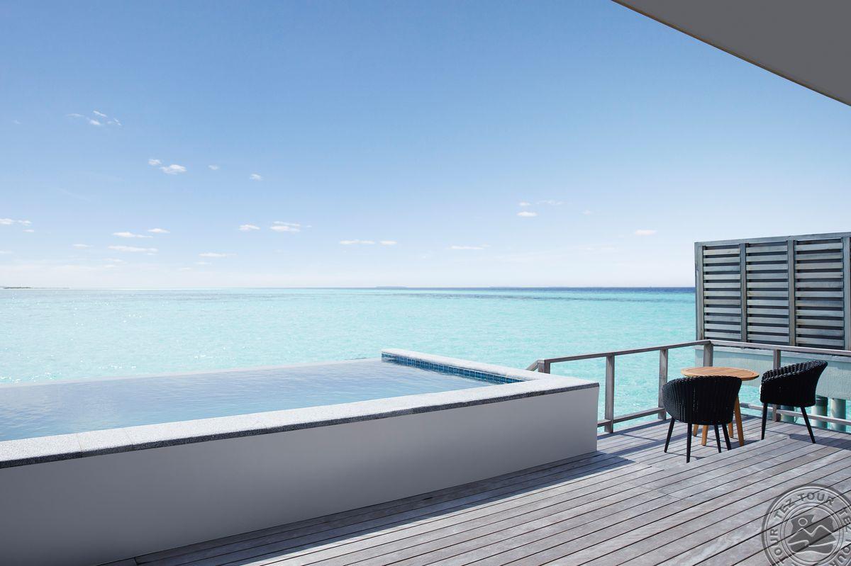 4 Two-Bedroom Overwater Villa with Pool (270 м2; макс. 4 или 2+2 чел.). Водные виллы с прямым спуском в океан. Две спальни, гостиная, две ванные комнаты, терраса с частным бассейном и зоной отдыха;
