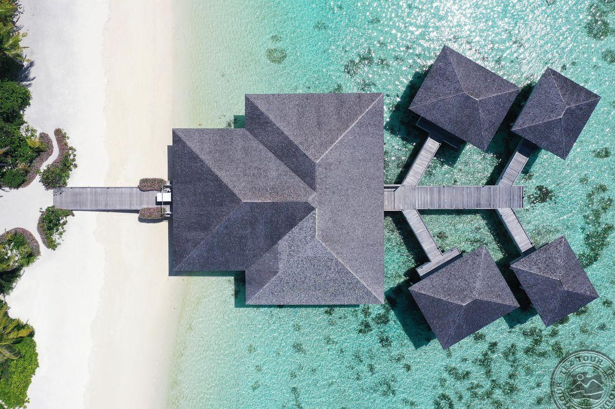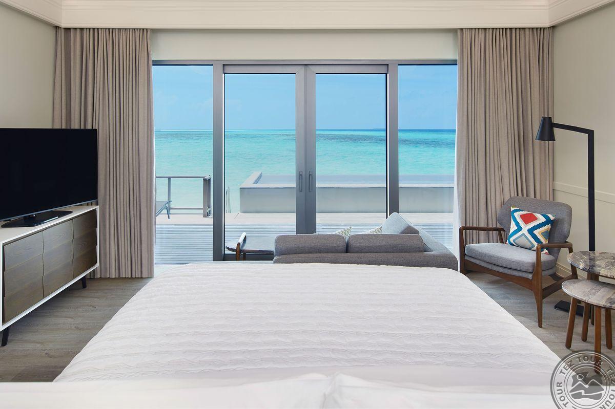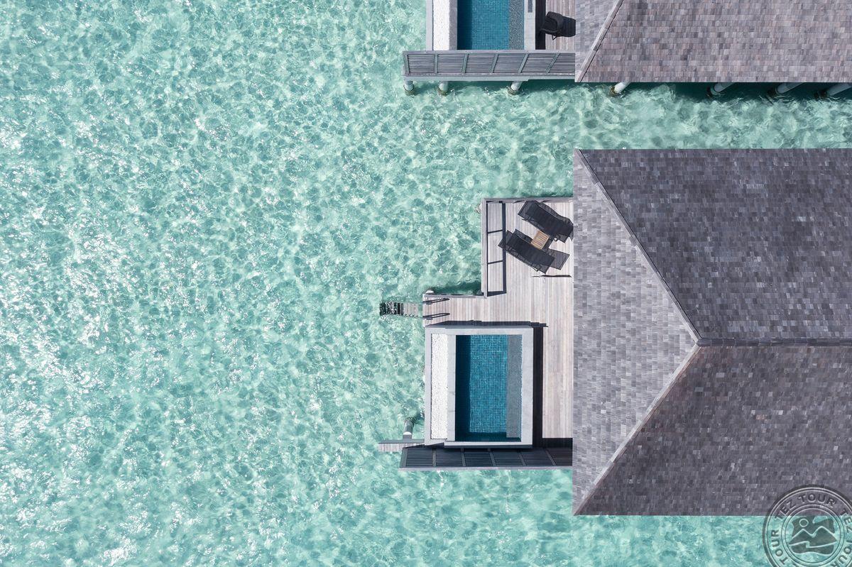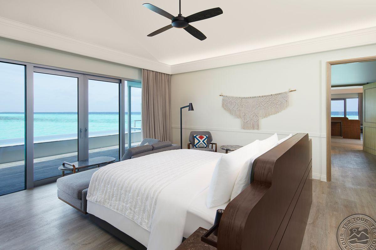4 Two-Bedroom Overwater Villa with Pool (270 м2; макс. 4 или 2+2 чел.). Водные виллы с прямым спуском в океан. Две спальни, гостиная, две ванные комнаты, терраса с частным бассейном и зоной отдыха;