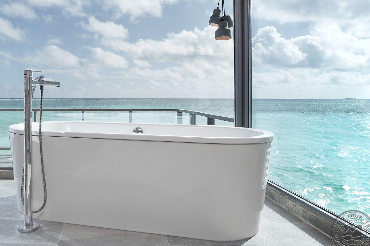 43 Sunrise Overwater Villa (100 м2; макс. 2+1 чел.). Водные виллы с видом на рассвет. Спальня с кроватью king-size, ванная комната с ванной и душем, терраса со спуском в океан;