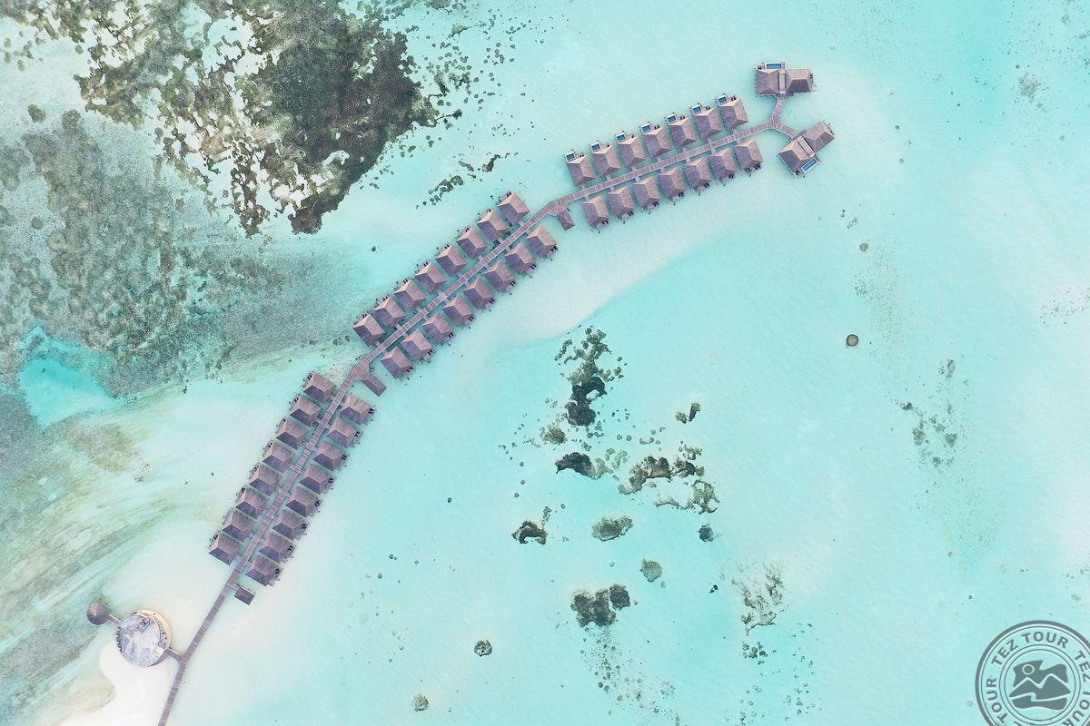 36 Sunset Overwater Villa (100 м2; макс. 2+1 чел.). По наполнению идентичны номерам Sunrise Overwater Villa, но имеют вид на закат;