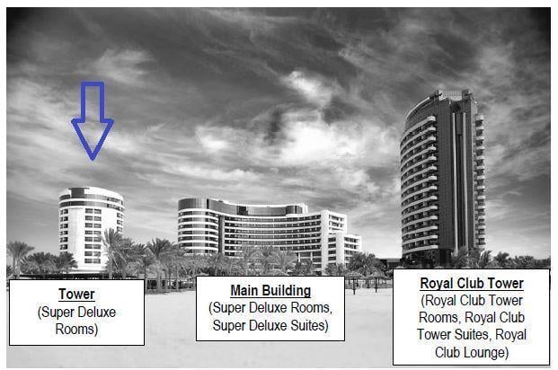 Отель состоит из трёх зданий: два 10-этажных и одно 16-этажное, общее количество лифтов - 8.