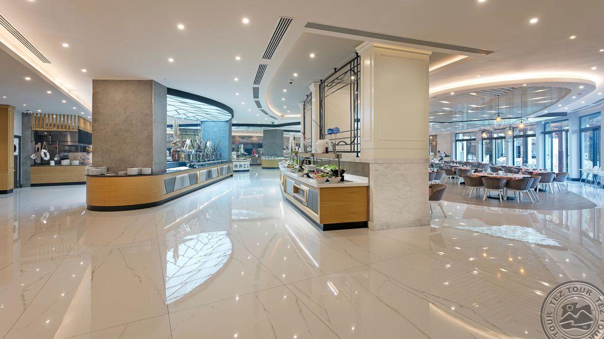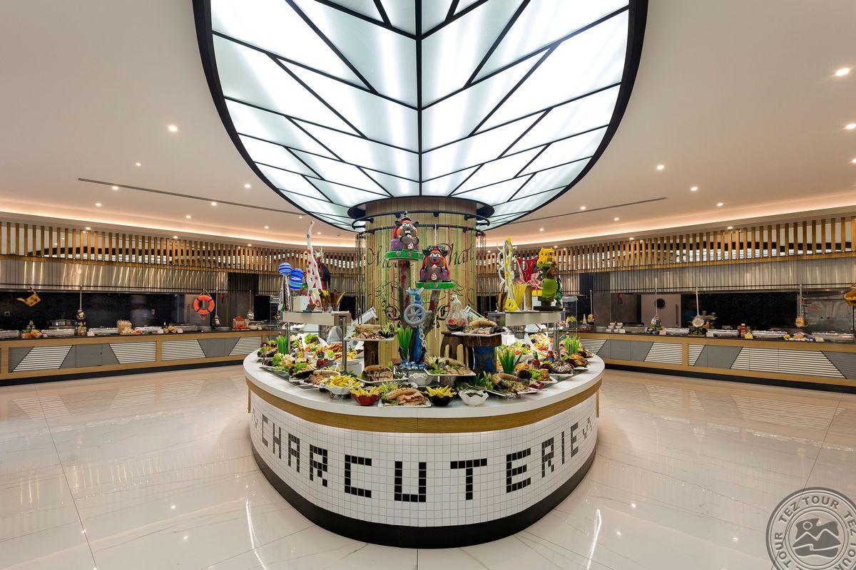 Территория:> рестораны: 3 (основные, один их только для гостей Villa Suite, Family Chalet и Swim Up room) бары: 17 крытые бассейны: 2 (подогрев 18.03-15.04 и 15.10-10.11) бассейны: 10 (открытые, 2 с морской водой, 2 только для гостей Villa Suite, Family Chalet и Swim Up room, Waterfall Pool с подогревом в марте, апреле, ноябре) кинозал (7D Cinema платно) спа-центр конференц-залы: 1 (1110 м2) у бассейна полотенца: бесплатно химчистка (платно) рестораны a la carte: 5 кабинет врача (платно) кондитерская водные горки: 17 (2 аквапарка, подогревается один в марте, апреле, октябре и ноябре) Wi-Fi бесплатно аквапарк (13 горок, вода подогревается один в марте, апреле и ноябре) парковка есть салон красоты платно прачечная платно у бассейна зонтики, шезлонги, матрасы: бесплатно парикмахерская (платно) магазины снек-бар (7)