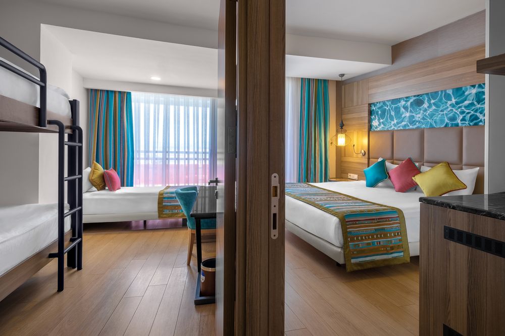 FAMILY DUPLEX SUITE ROOMВид из номера: на территорию/ мореПлощадь номера: 75 кв.мКомментарии: 2 спальни, межкомнатная дверь, внутренняя лестница