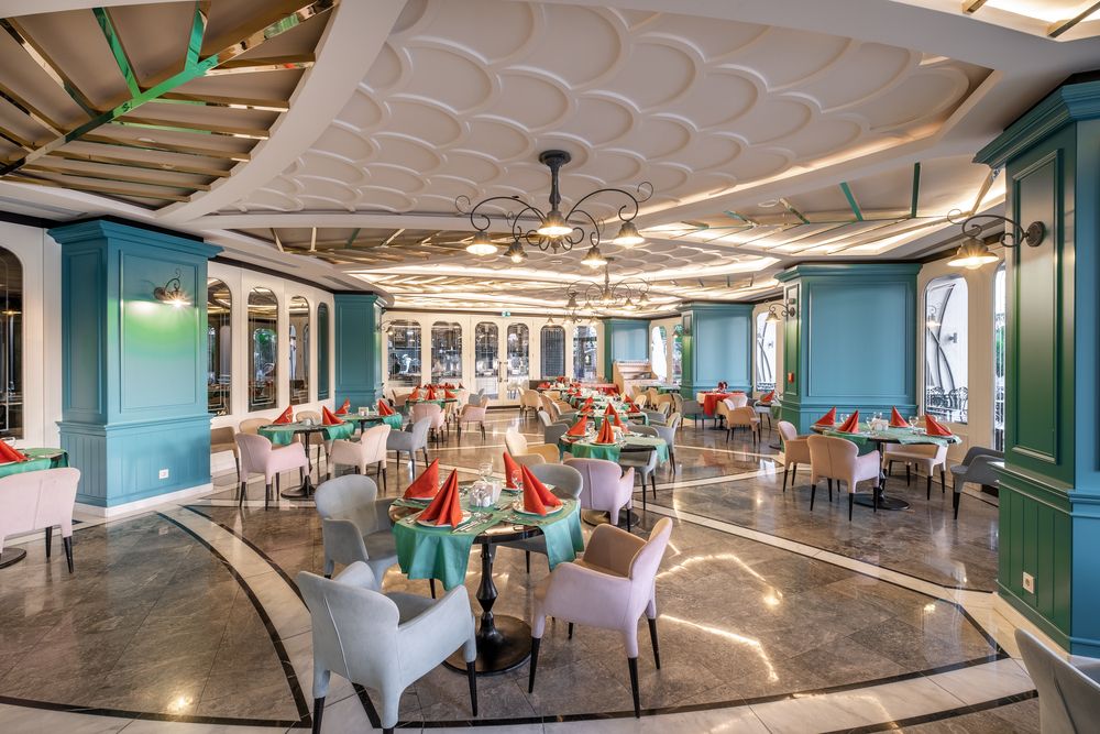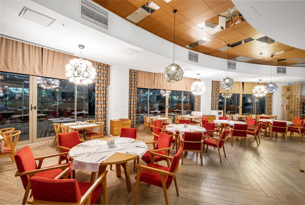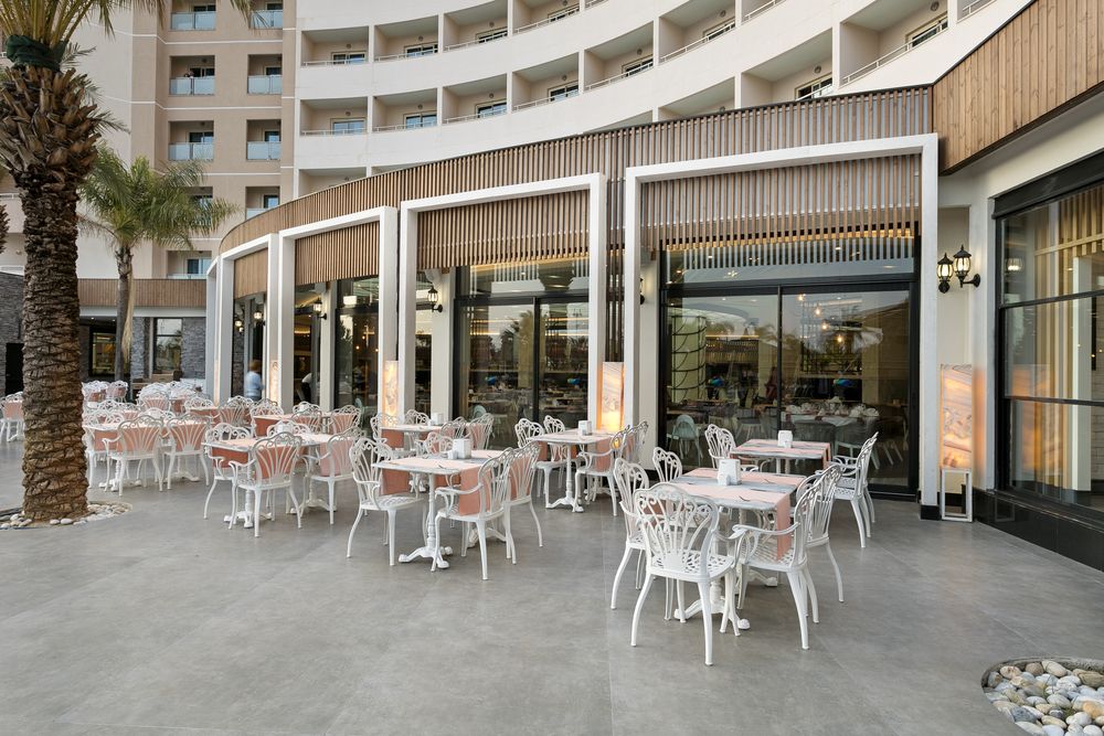- РестораныХаят - шведский столГармония - шведский столВиллаЛапиано (с 19:00 до 21:00) - a la carte, итальянская кухняДельфин (с 19:00 до 21:00) - a la carte, рыбныйЭль Сомбреро (с 19:00 до 21:00) - a la carte, мексиканская кухняAsian (с 19:00 до 21:00) - a la carte, азиатская кухняTurkish (с 19:00 до 21:00) - a la carte, турецкая кухняПосещение ресторанов a la carte - платно, по предварительному бронированию