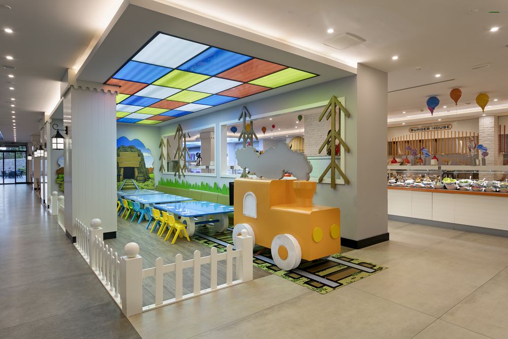 Детский бассейн, Детский клуб, Детская площадка, Ресторан(ы) с высокими стульчиками для детей, Детское меню: (в наличии), Питание для младенцев: (в наличии), Услуги няни: (по запросу - платно)