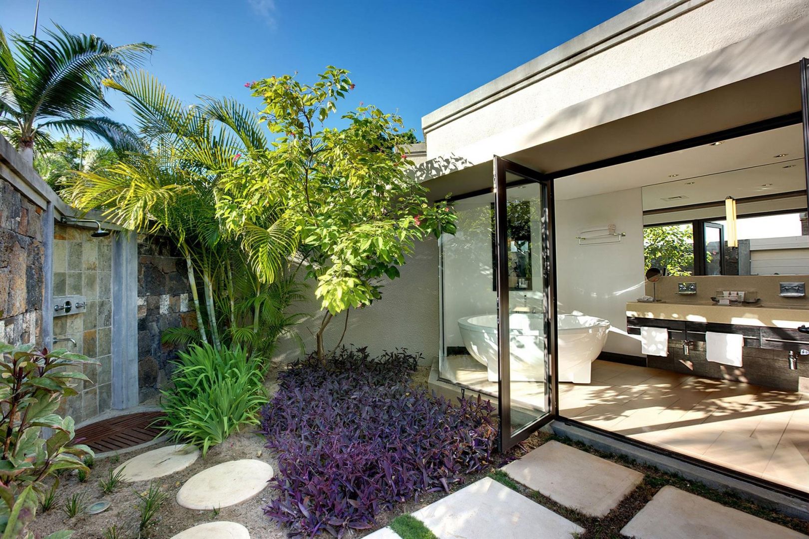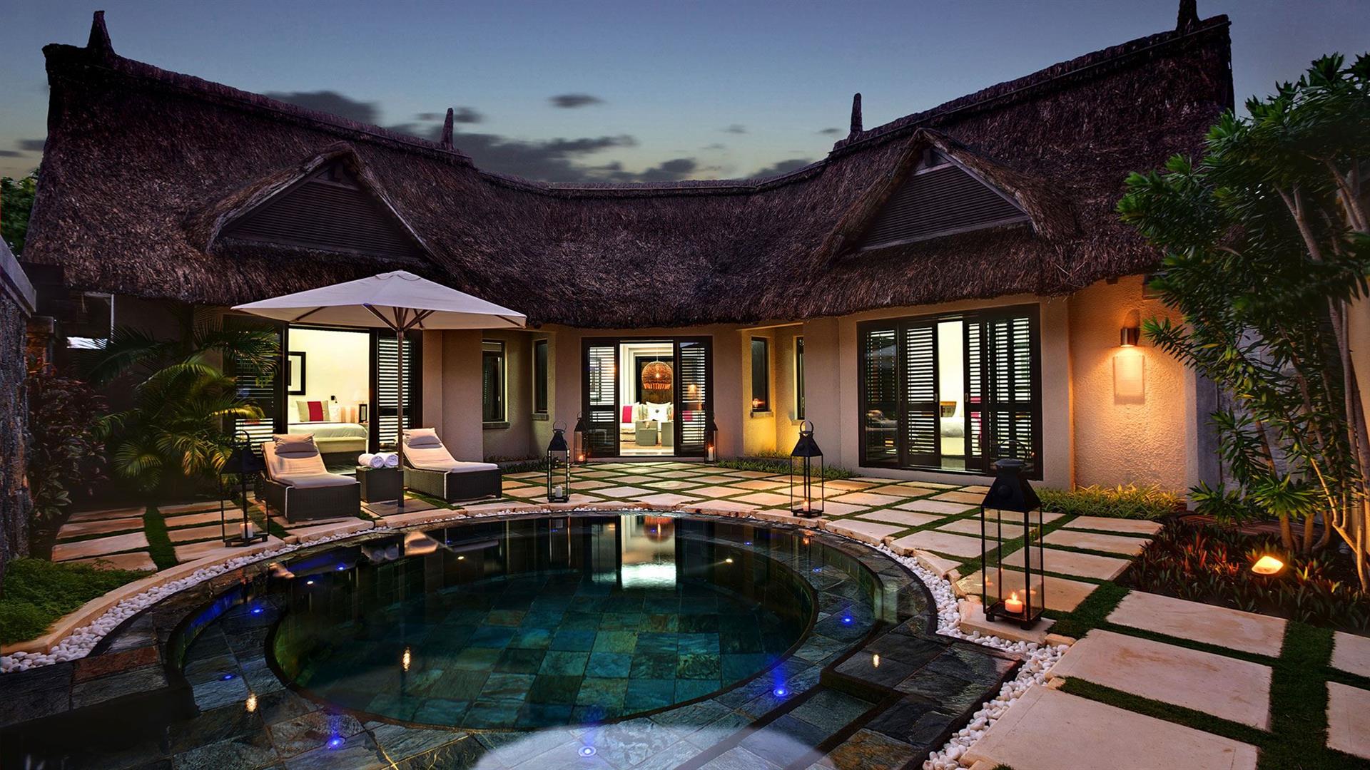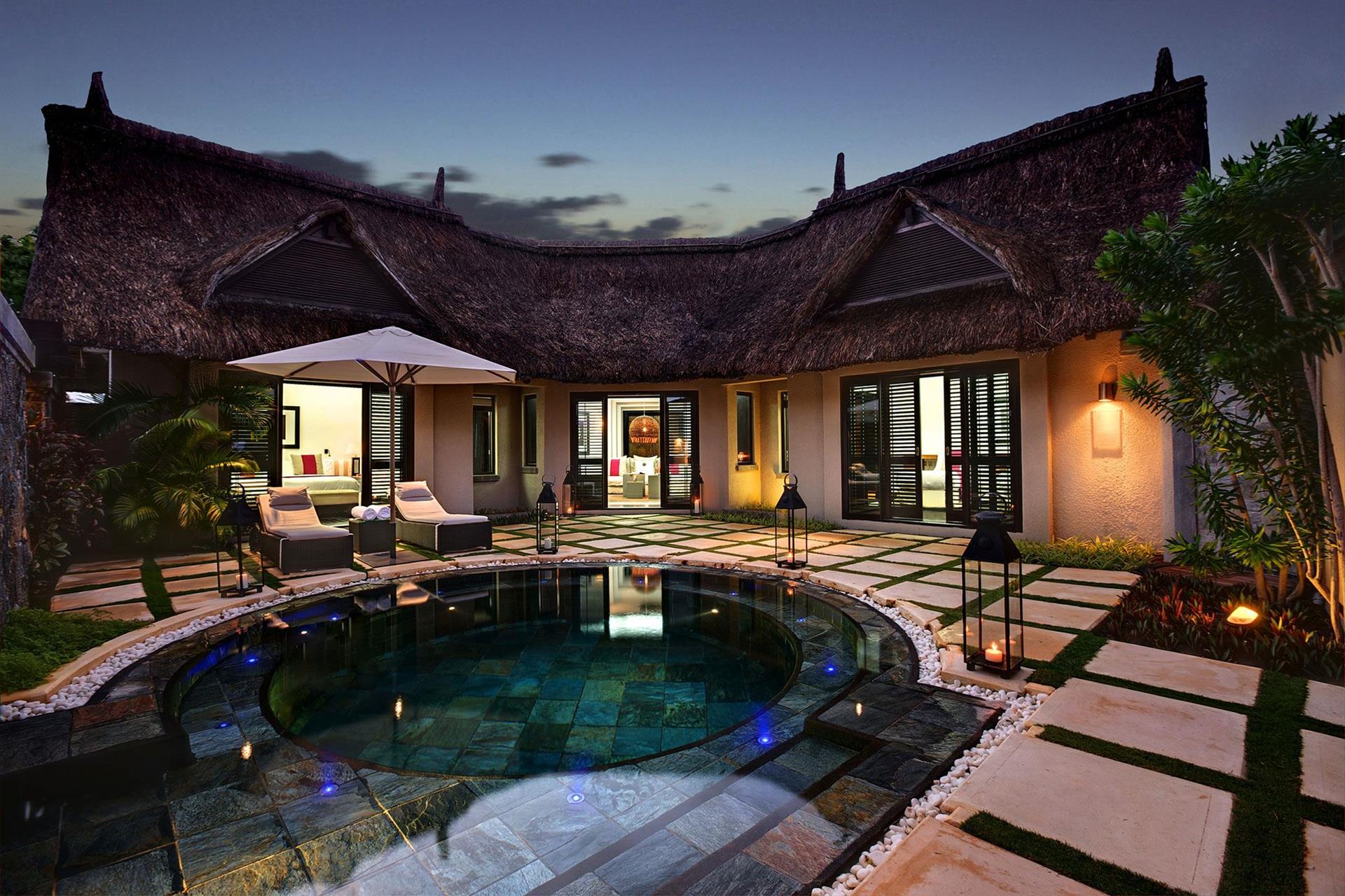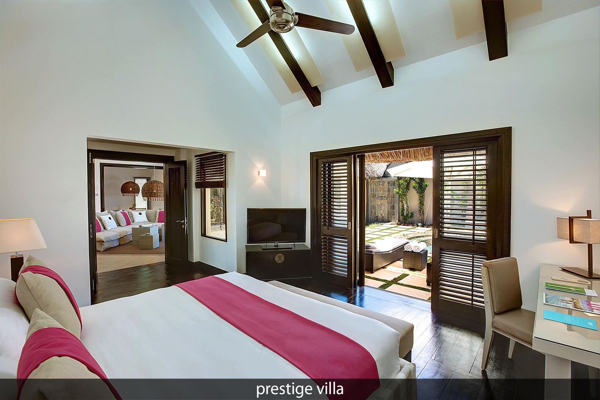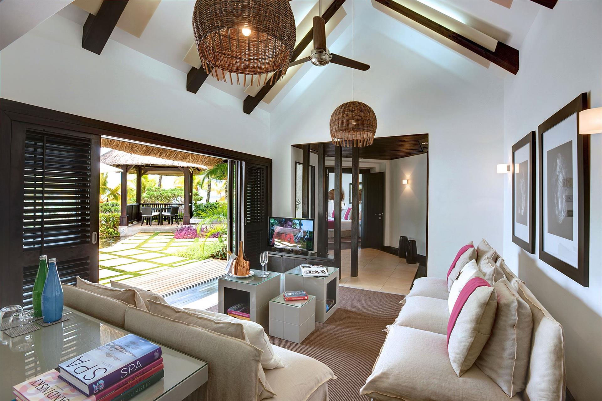• 1 The LUX* Suite (240 м?, макс. 2+1 подросток (12-17 лет) или 2+2 реб (3-11 лет) или 2+1 infant (0-3 лет)). Просторная вилла с элегантным дизайном. Спальня с кроватью king-size, гардеробная, ванная комната с ванной и душем, гостиная с обеденной зоной. Терраса с видом на сад, а также терраса на крыше для принятия солнечных ванн. Услуги персонального батлера.