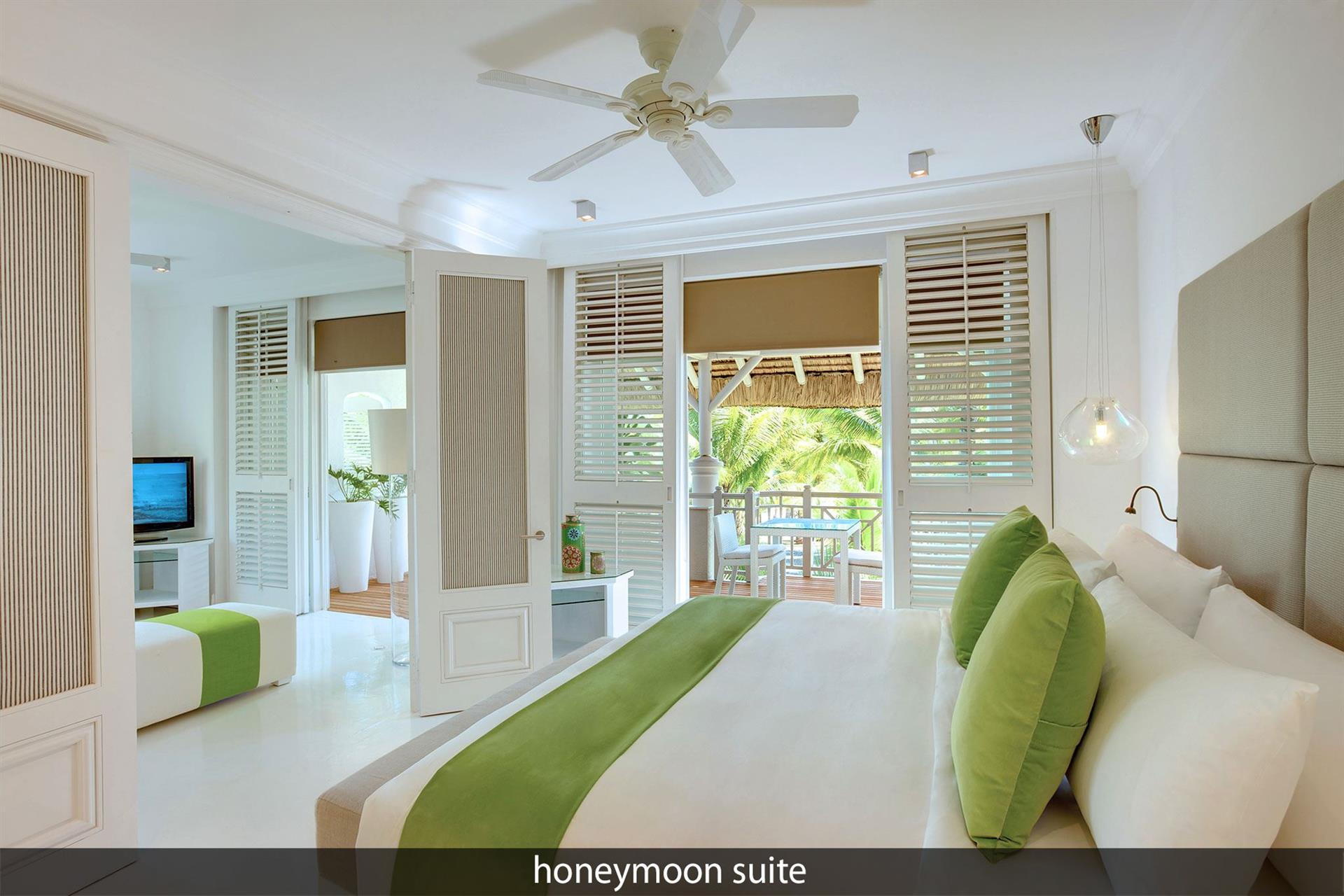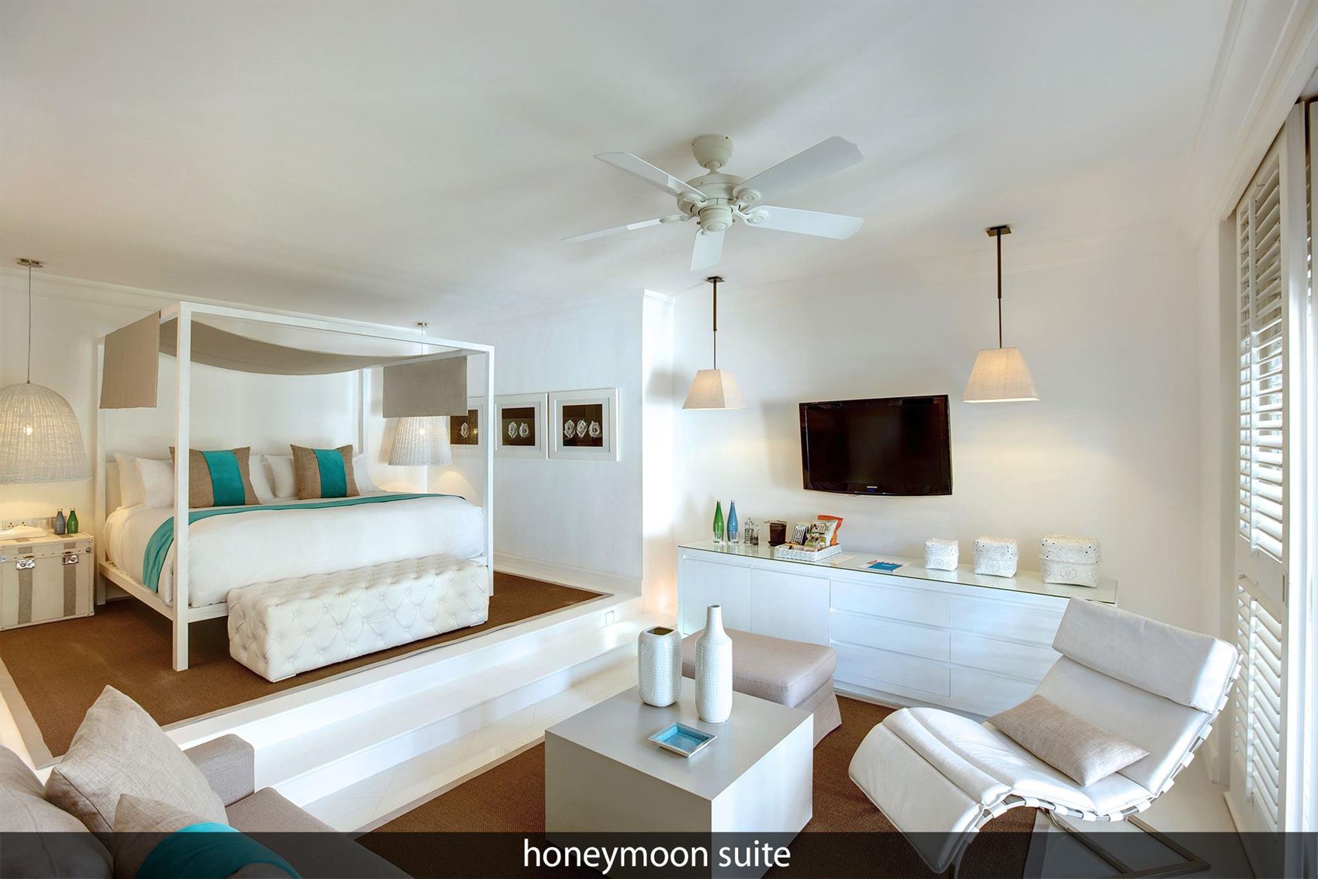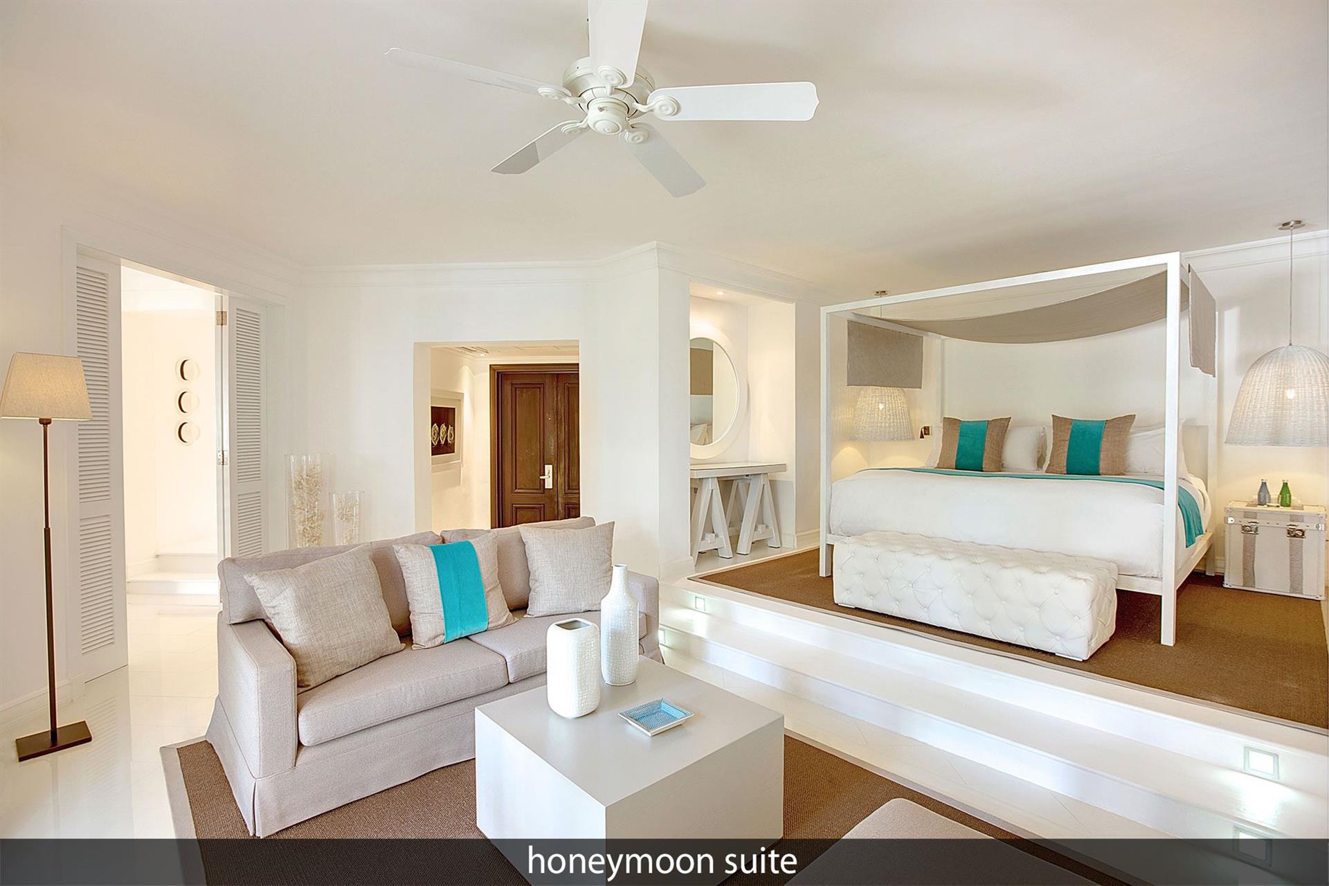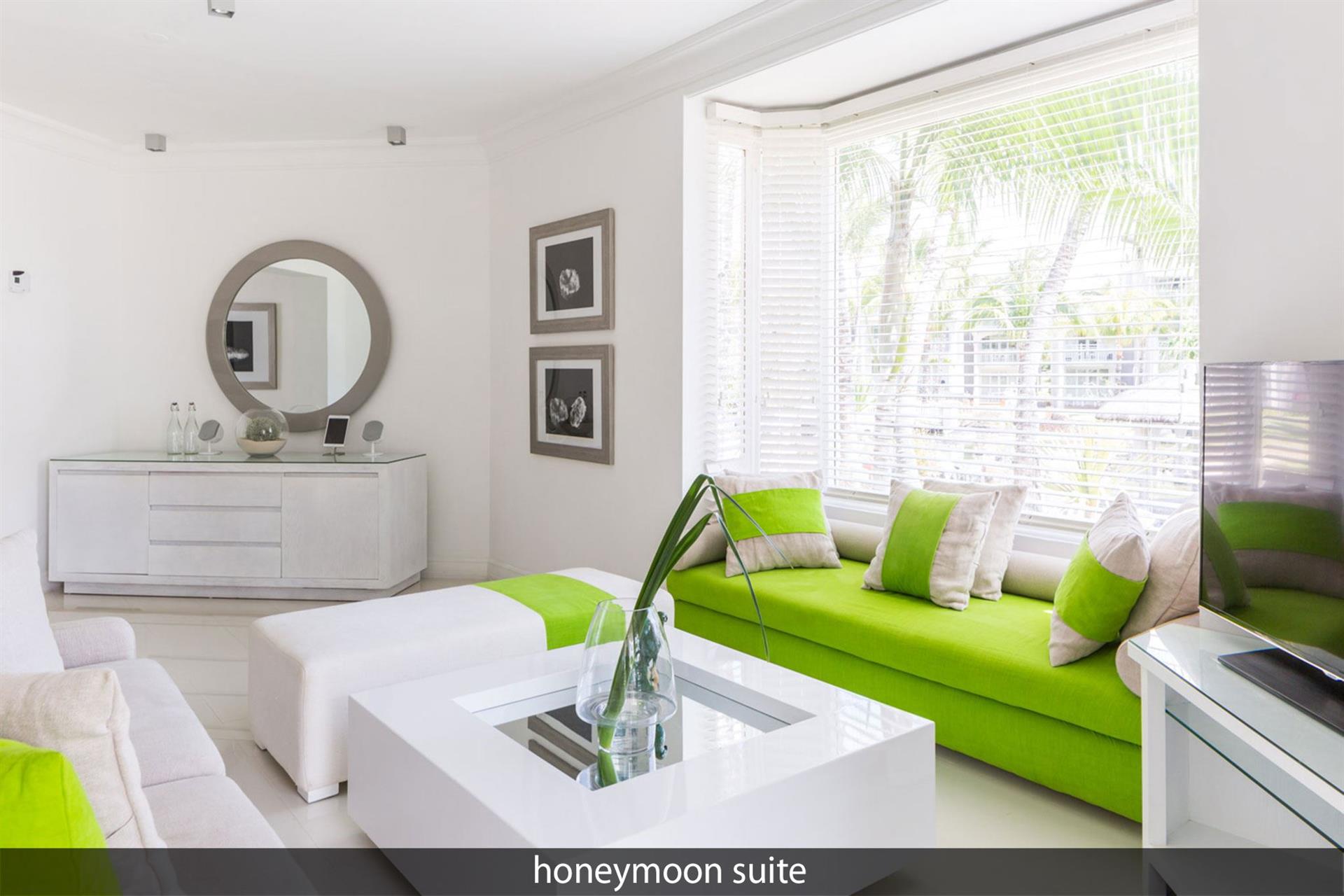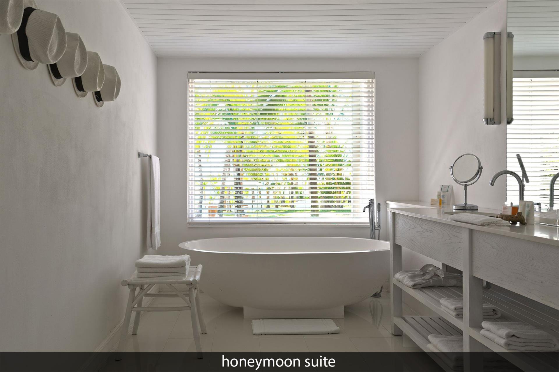 • 7 Honeymoon Suite (95 м?, макс. 2 чел.). Номера, специально предназначенные для молодоженов. Спальня с кроватью king-size, зона гостиной и гардеробной, ванная комната с ванной и душем, терраса с обеденной зоной.