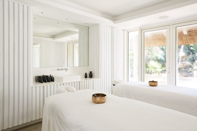 Junior Suite (56 м2): просторный номер на первом этаже, с уединенной террасой и прямым выходом на пляж, отдельная ванна на фоне личного сада, за стеклянной стеной; макс. размещение 3 взрослых или 2 взр. + 1 подросток/ребенок/инфант