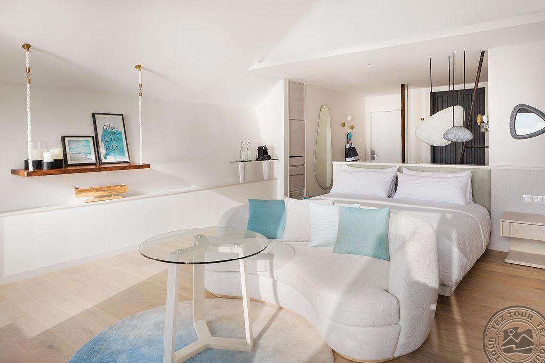 12 Beach Pool Villa (116 м², макс. 2 или 2+1 подросток). Отдельно стоящие виллы на берегу с прямым доступом к пляжу, собственным садиком с бассейном, круглой ванной, просторной спальней и ванной комнатой, выходящей прямо в сад. Все номера с видом на закат.