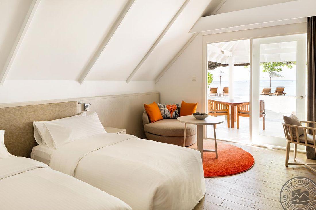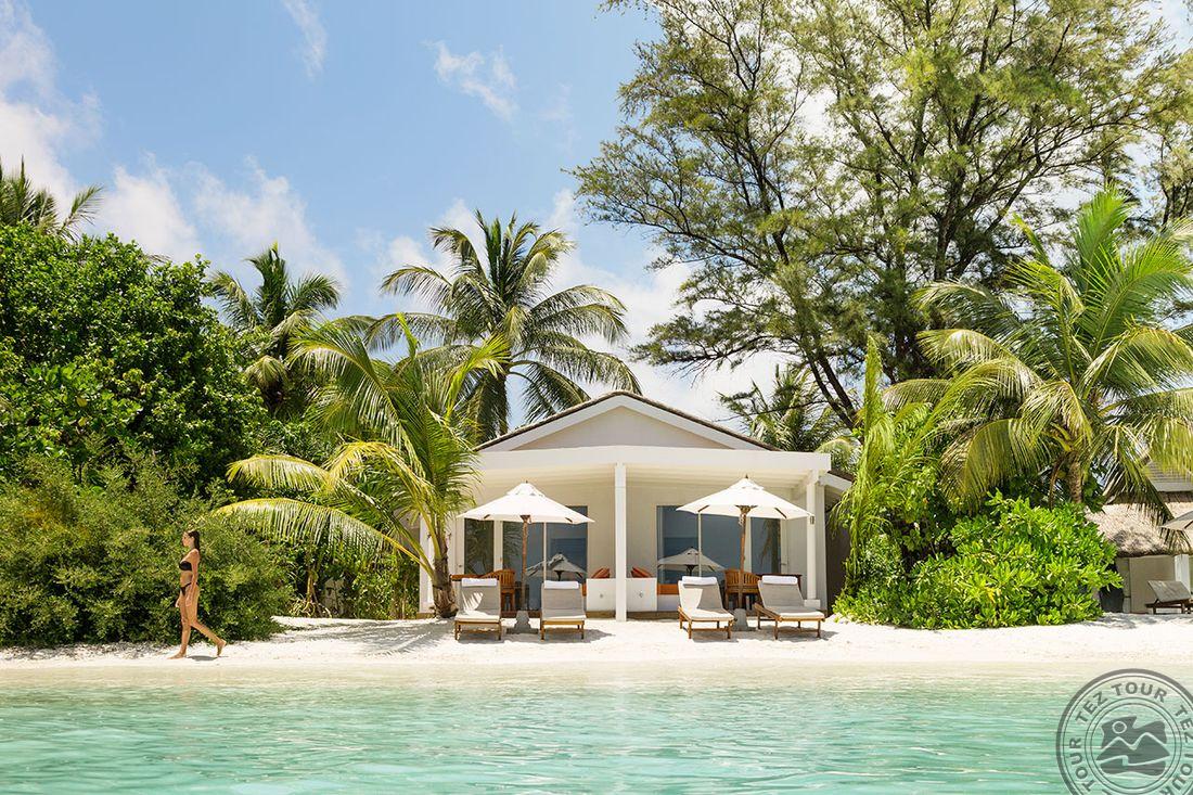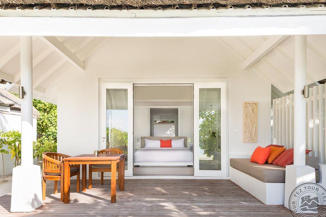 36 Beach Pavilion (60 м², макс. 2 или 2+1 подросток). Расположены по обе стороны острова в блоках по два номера в каждом. Спальня, терраса с зоной отдыха. Ванная комната на открытом воздухе с ванной и душем, второй душ закрытый. Часть номеров с кроватями king-size, часть – с кроватями twin. Некоторые номера могут быть совмещены (interconnecting).