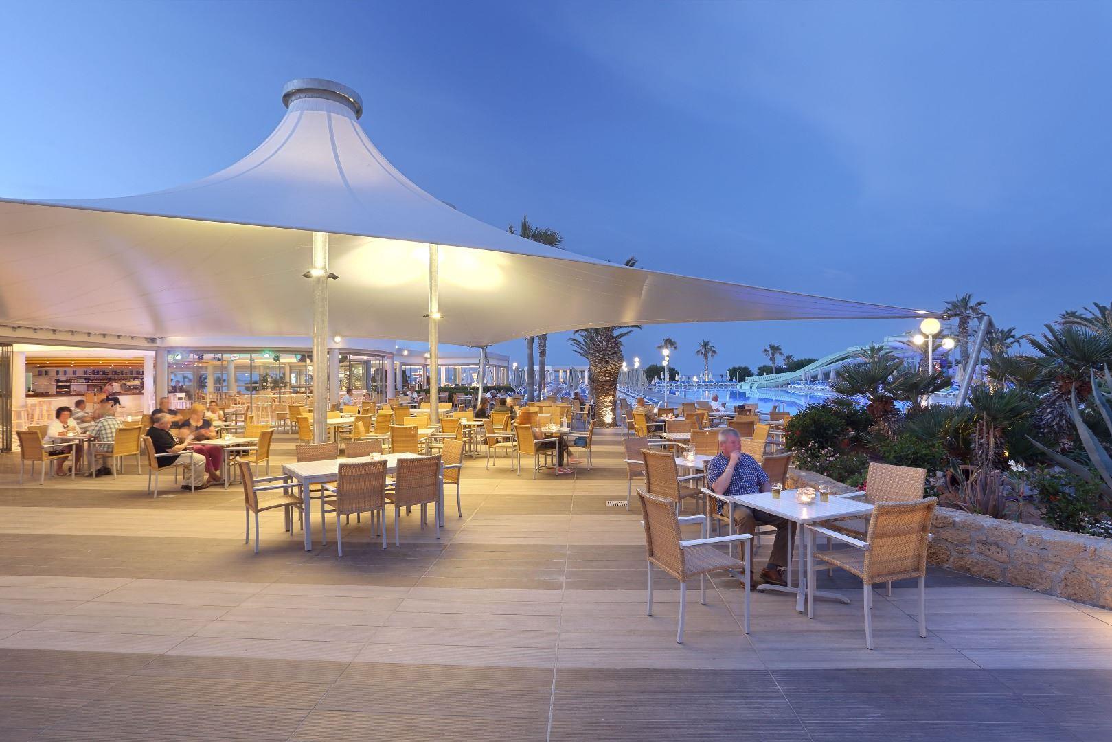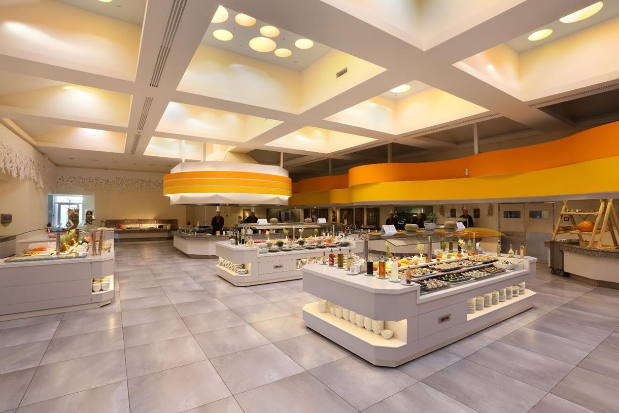 Концепция AI включает: завтрак (07:30-10:30), поздний завтрак (10:30-11:00), обед (12:30-14:30) и ужин (18:30-21:30) в основном ресторане. Гости также могут питаться в ресторане Kalypso: завтрак 07:30-10:30, обед 13:00-15:30, ужин 19:00-21:30 (для ужина необходима предварительная резервация). Закуски в баре у бассейна – 11:00-17:00 (мороженое, салаты, пицца, вафли, сэндвичи, горячие и холодные закуски, фруктовые салаты).