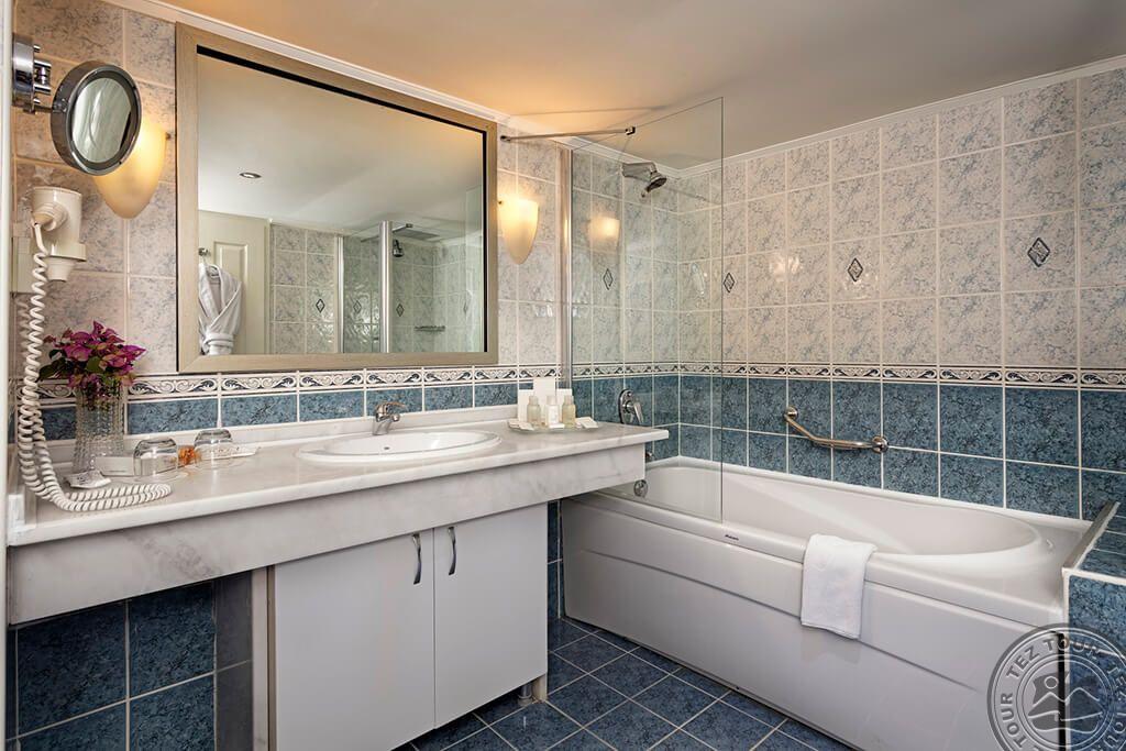 Номер:> сейф: в номере, бесплатно уборка номера: ежедневно смена белья: 3 раза в неделю халат пол: мрамор (и ковровое покрытие) косметические принадлежности (бесплатно) телевизор: есть (русские каналы) тапочки душ фен: есть кондиционер: центральный мини-бар бесплатно (вода ежедневно, безалкогольные напитки в день заезда ) балкон или терраса телефон набор для приготовления чая/кофе есть Интернет: Wi-Fi, бесплатно
