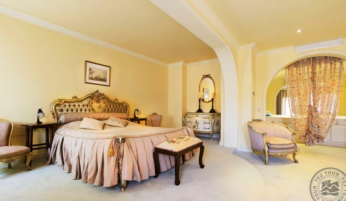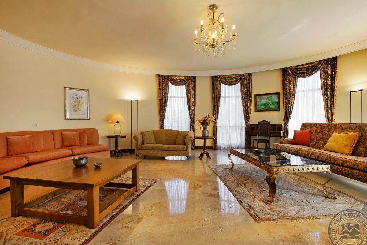 1 трехкомнатный Presidential suite (гостиная, камин, кухня, 2 спальни с дверью, 2 ванные комнаты с джакузи, макс. 4+2 чел., 320 м2, VIP-сервис).