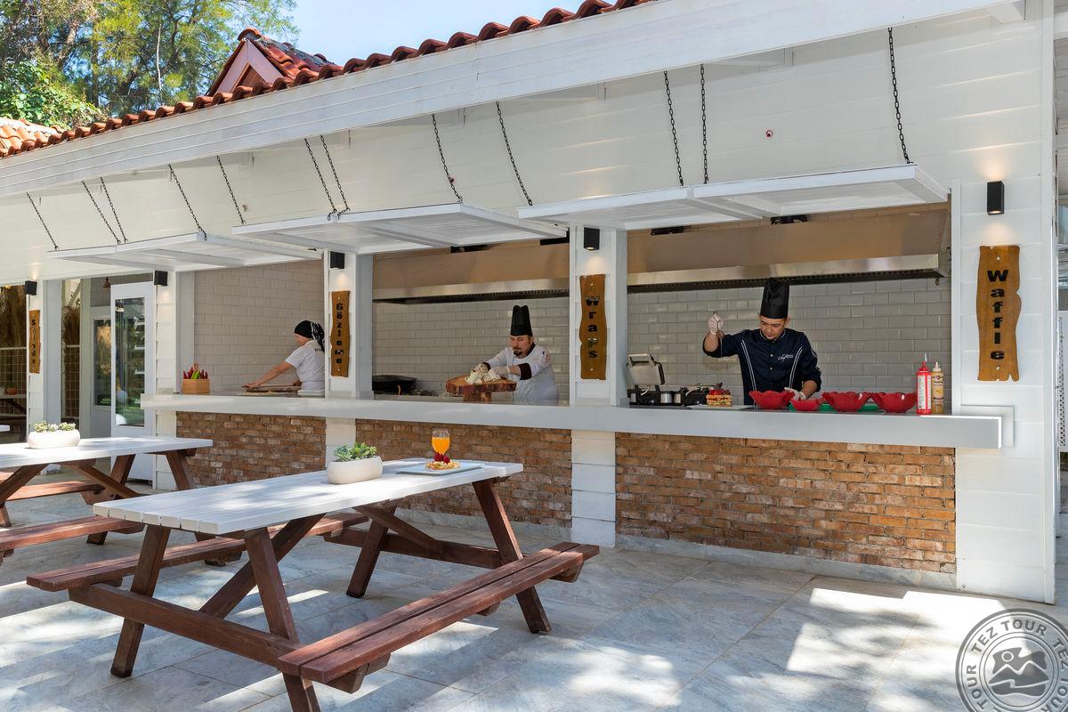 Территория:> рестораны: 1 (основной) бары: 4 (“The Lounge” - Для гостей, проживающих в номерах типа Suit и LifeStyle бесплатно) крытые бассейны: 1 бассейны: 1 (открытый 7 секционный бассейн) концертный зал (платно) спа-центр (платно) химчистка (платно) рестораны a la carte: 5 (по предварительной резервации; Anatolia: Турецкая кухня – бесплатно, Casa Mexicana: Мексиканская кухня – бесплатно, Baharat Bazaar: Азиатская кухня – бесплатно, Club Phaselis: Средиземноморская кухня – платно (19:00 – 21:30), Steak House: стейк рестора) кабинет врача (круглосуточно услуги медсестры и первая помощь предоставляются бесплатно, 24 часа. Услуги врача и скорой помощи - за дополнительную плату) кондитерская ((дессерты, мороженое, безалкогольные напитки) бесплатно) водные горки: 2 прачечная (платно) Wi-Fi бесплатно у бассейна зонтики, шезлонги, матрасы: бесплатно парикмахерская (платно) магазины (платно) снек-бар ((гезлеме, шаурма, запеченый картофель с наполнителями, бургеры, пицца, роллы в лаваше, наггетсы, салаты, фрукты, вафли) бесплатно)