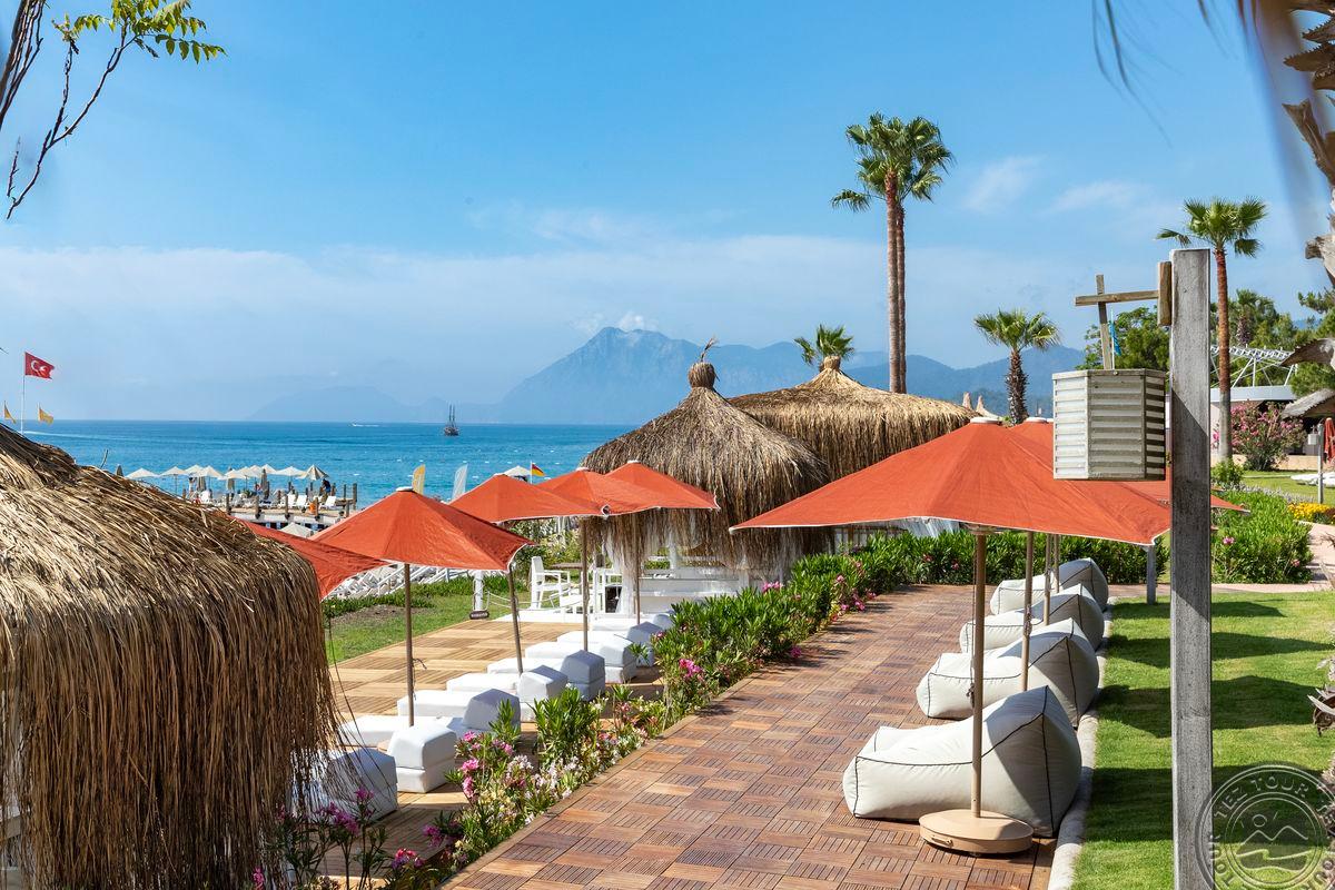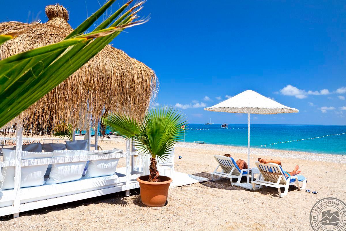 Пляж:> шатры на пляже платно (предлагаются 3 различных пакета услуг. Услугу можно получить, сделав предварительную резервацию за 24 часа) на пляже зонтики, шезлонги, матрасы: бесплатно пирс на пляже полотенца: бесплатно бар на пляже: бесплатно собственный песчано-галечный