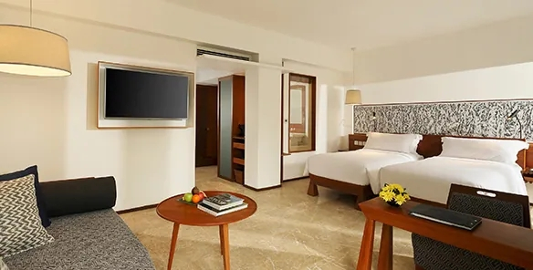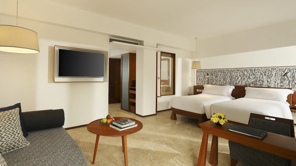 Номер уютно обставлен и оснащён необходимым, чтобы отдохнуть после долгого и насыщенного дня. Имеются телевизор, мини-бар и тапочки. Перечисленные услуги есть не во всех номерах.