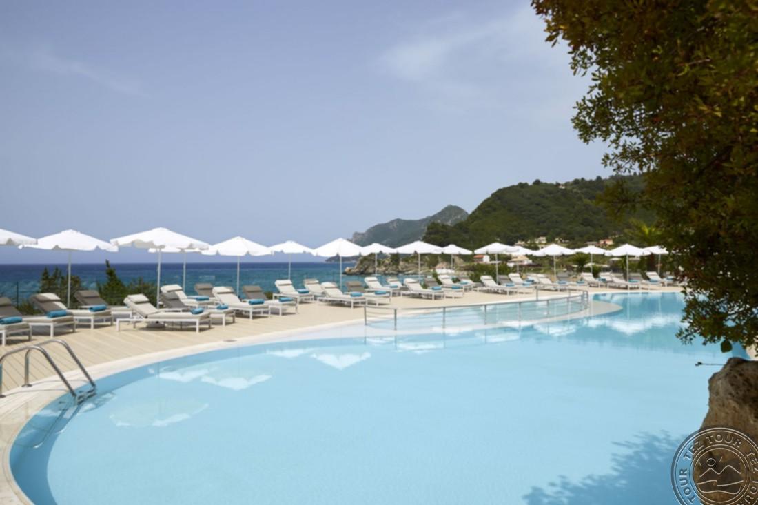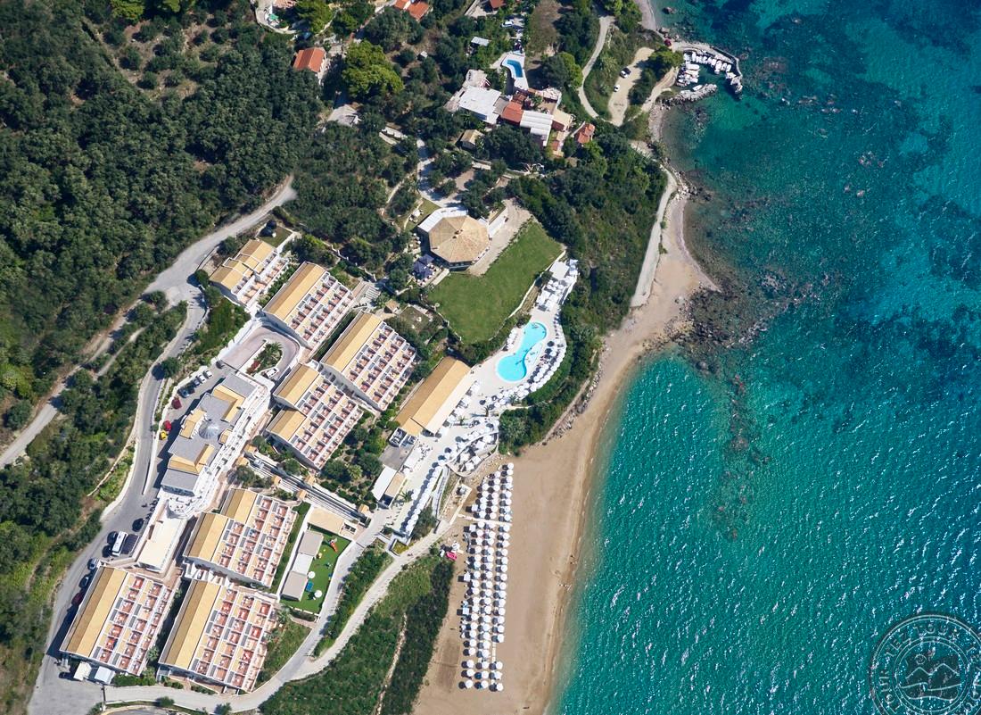 в 15 км от г. Керкира, в 14 км от аэропорта острова, в 2 км от местечка Пелекас, на склоне холма, на берегу моря. Автобусная остановка в 1,5 км от отеля.