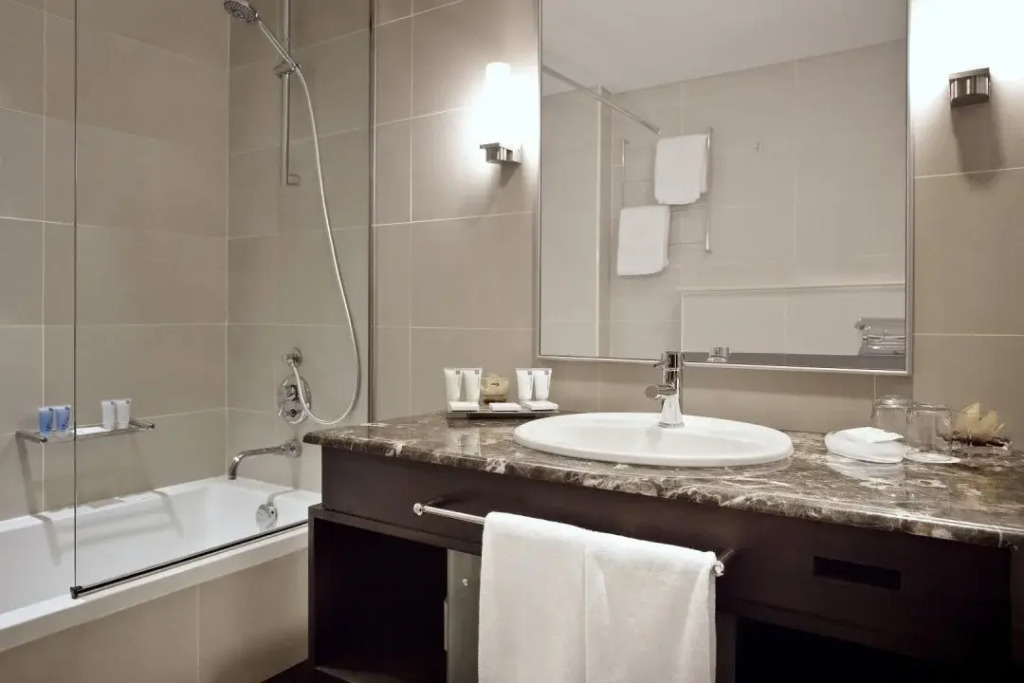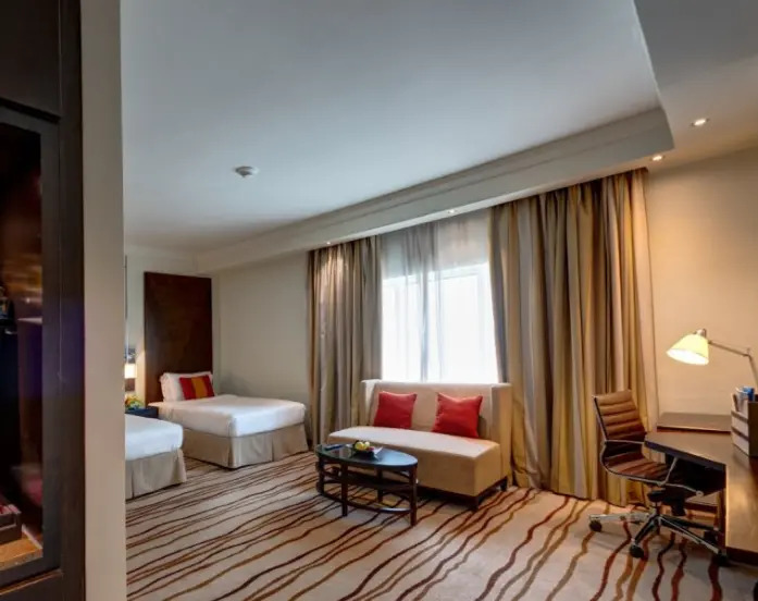 В 5-звездочном отеле Media Rotana, Barsha – Dubai будет комфортно и туристам, и бизнесменам. Деловые люди могут организовать банкет, провести совещание в конференц-зале, воспользоваться услугами секретаря и беспроводным доступом в Интернет. Гости имеют возможность заказать трансфер до аэропорта. Цена сервиса — доступная.