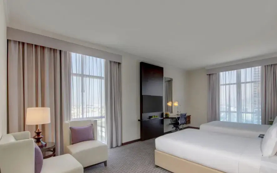 При бронировании смежных категорий сумма городского налога может изменяться и зависит от количества комнат. Городской налог за 2 комнаты составляет 40.00 AED за ночь, за 3 комнаты — 60.00 AED.