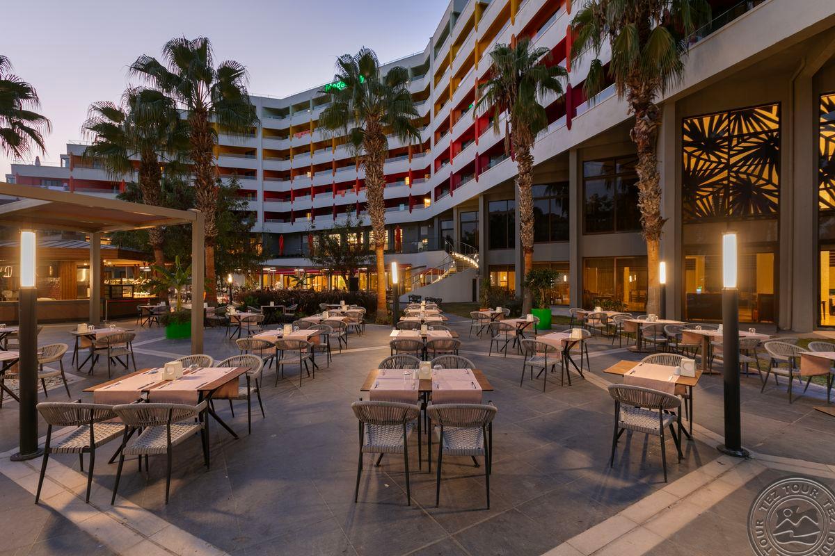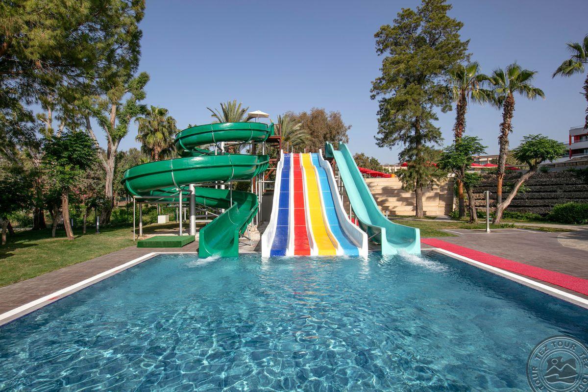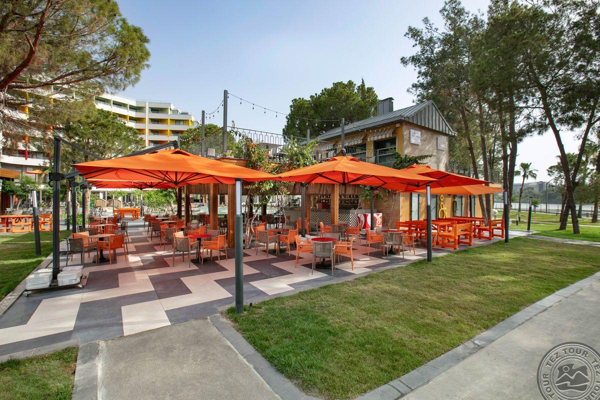 Территория:> рестораны: 1 (основной) бары: 7 крытые бассейны: 1 Интернет бесплатно бассейны: 2 (открытые) спа-центр (платно) конференц-залы: 2 (на 100–200 чел.) у бассейна полотенца: бесплатно у бассейна зонтики, шезлонги: бесплатно рестораны a la carte: 4 ((Стейк ресторан, Итальянский, Азиатский, Рыбный; по предварительной записи - платно)) кабинет врача (платно) водные горки: 3 Wi-Fi бесплатно парикмахерская (платно) магазины